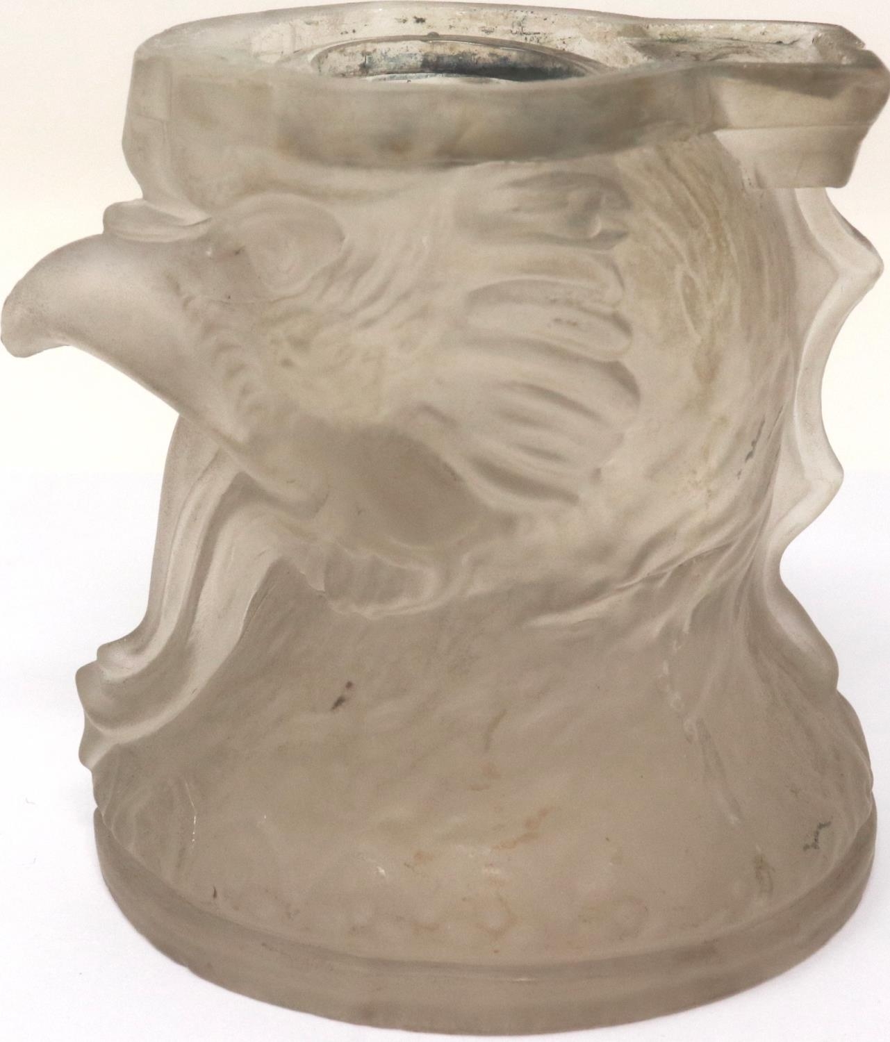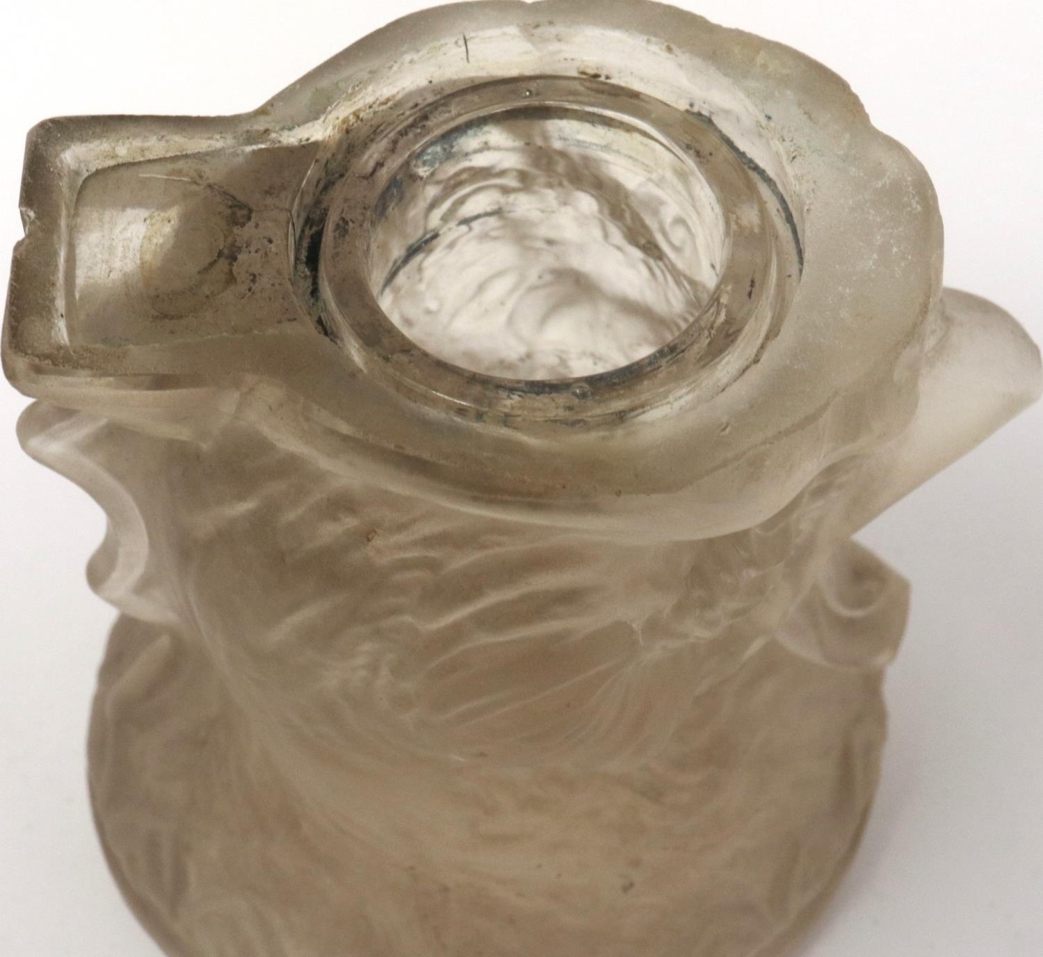 Continental frosted glass cockerel inkwell, lacking cover, H: 80 mm. P&P Group 1 (£14+VAT for the first lot and £1+VAT for subsequent lots)
