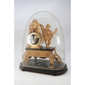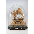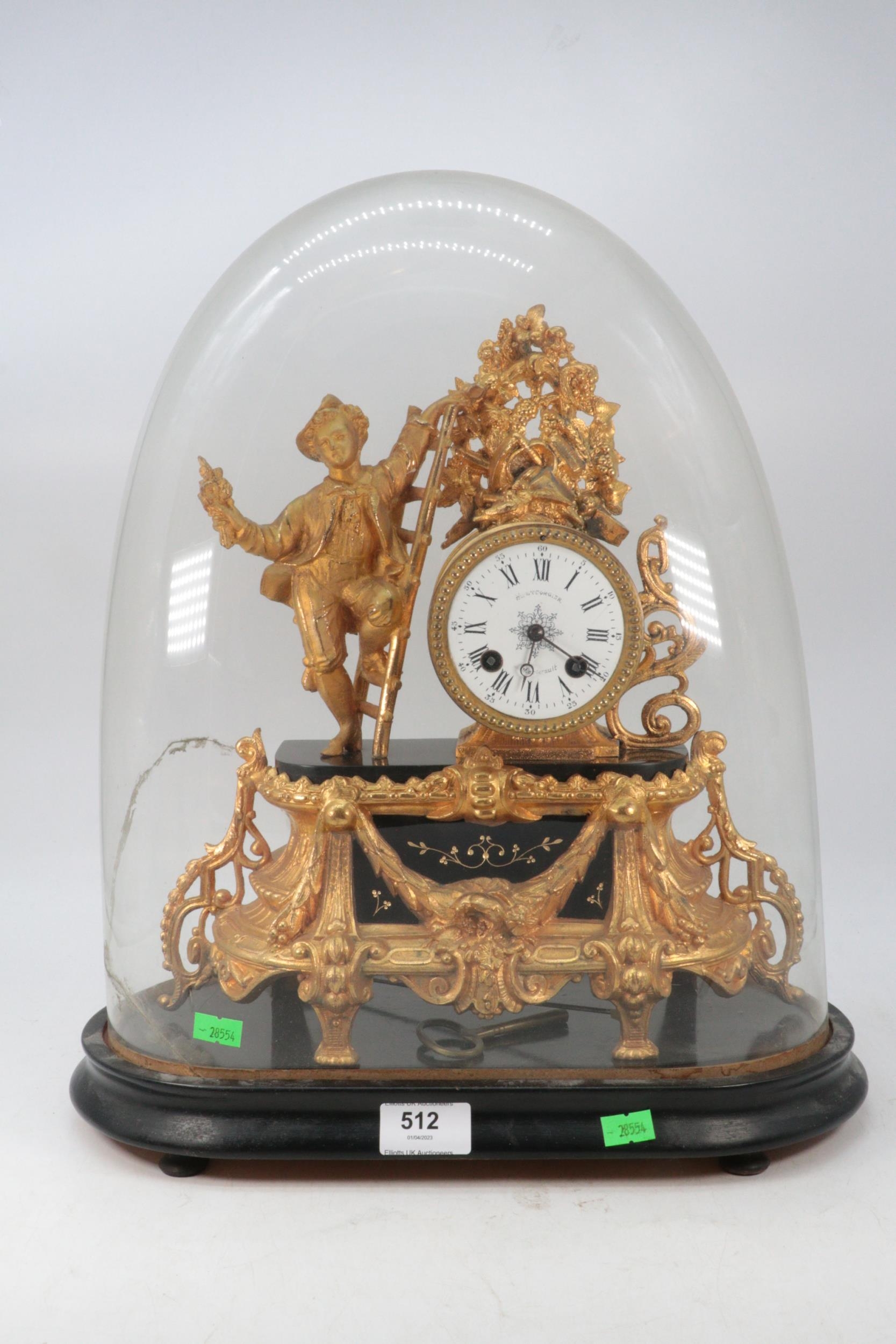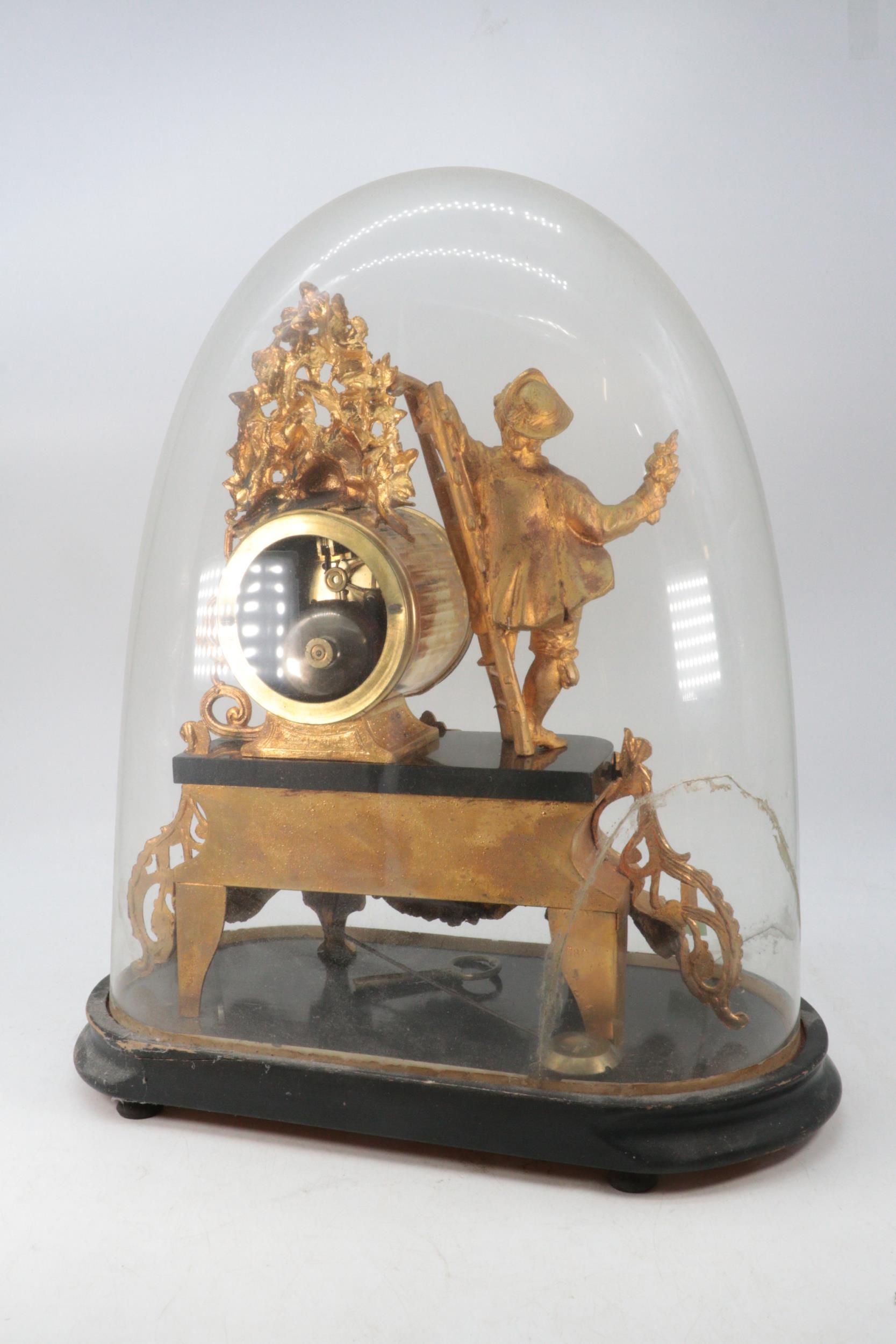 Antique gilt cased French mantle clock under glass dome. (dome repaired)