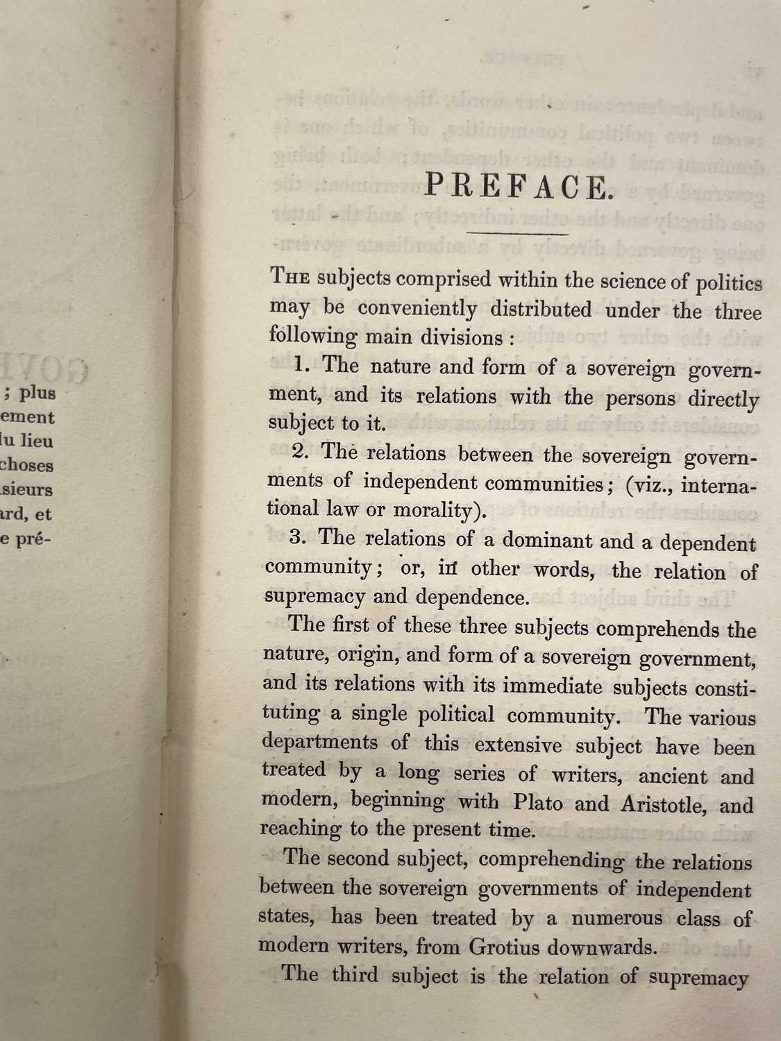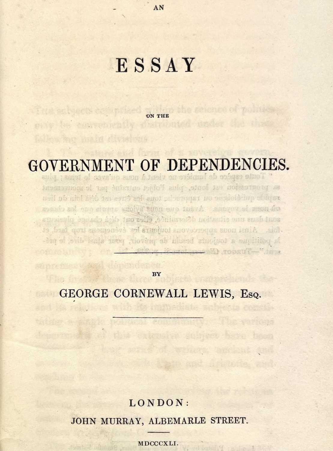 GEORGE CORNEWALL LEWIS. 'Essay on the Government of Dependencies,' 8vo, publishers boards, front board loosening, ex libris label to pastedown, John Murray, London, 1841.