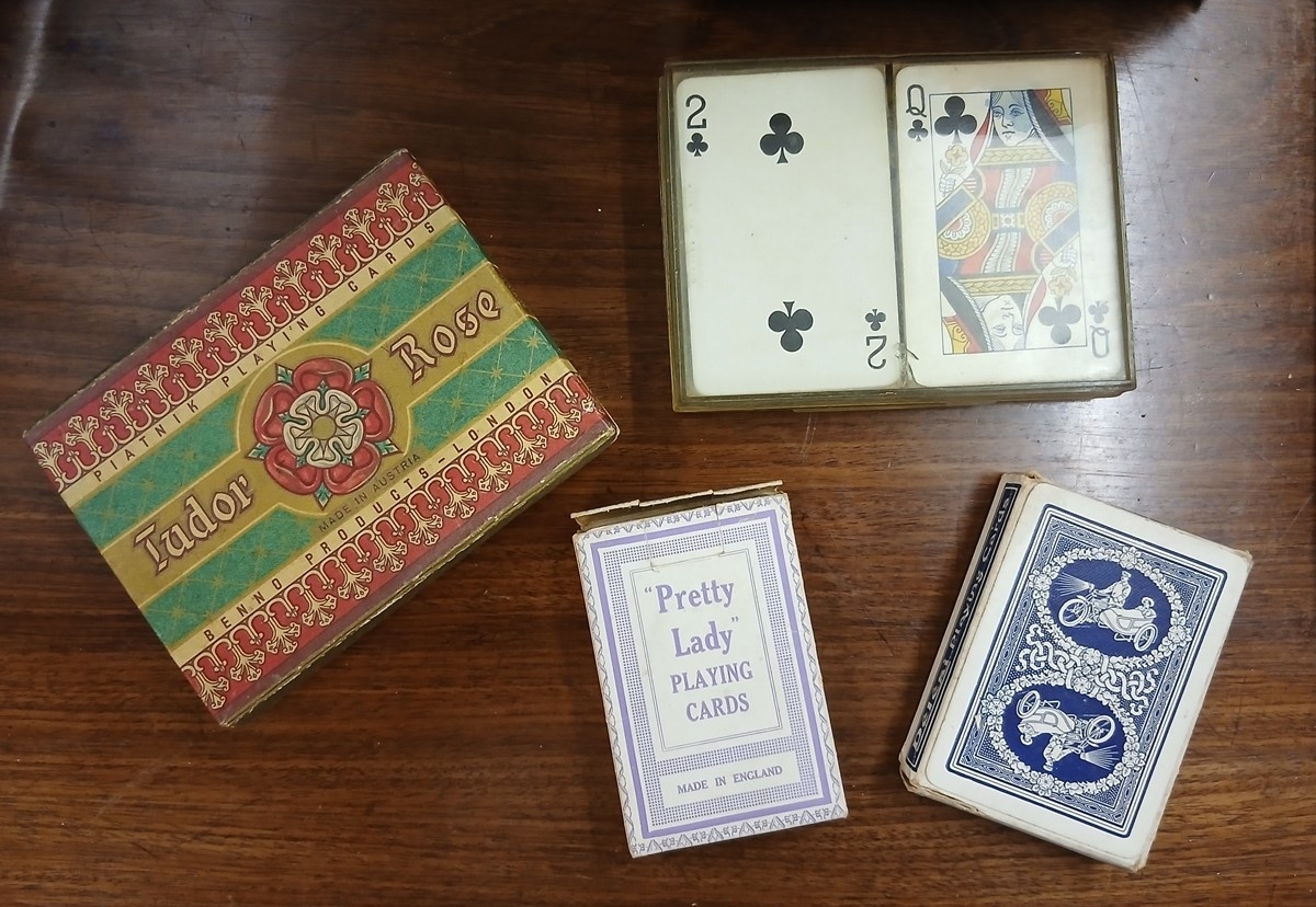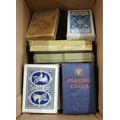 A box of vintage playing cards and card counters - 18 deck of cards to include 2 double packs and two boxes of counters