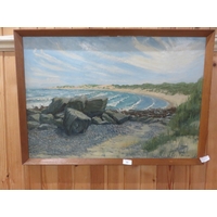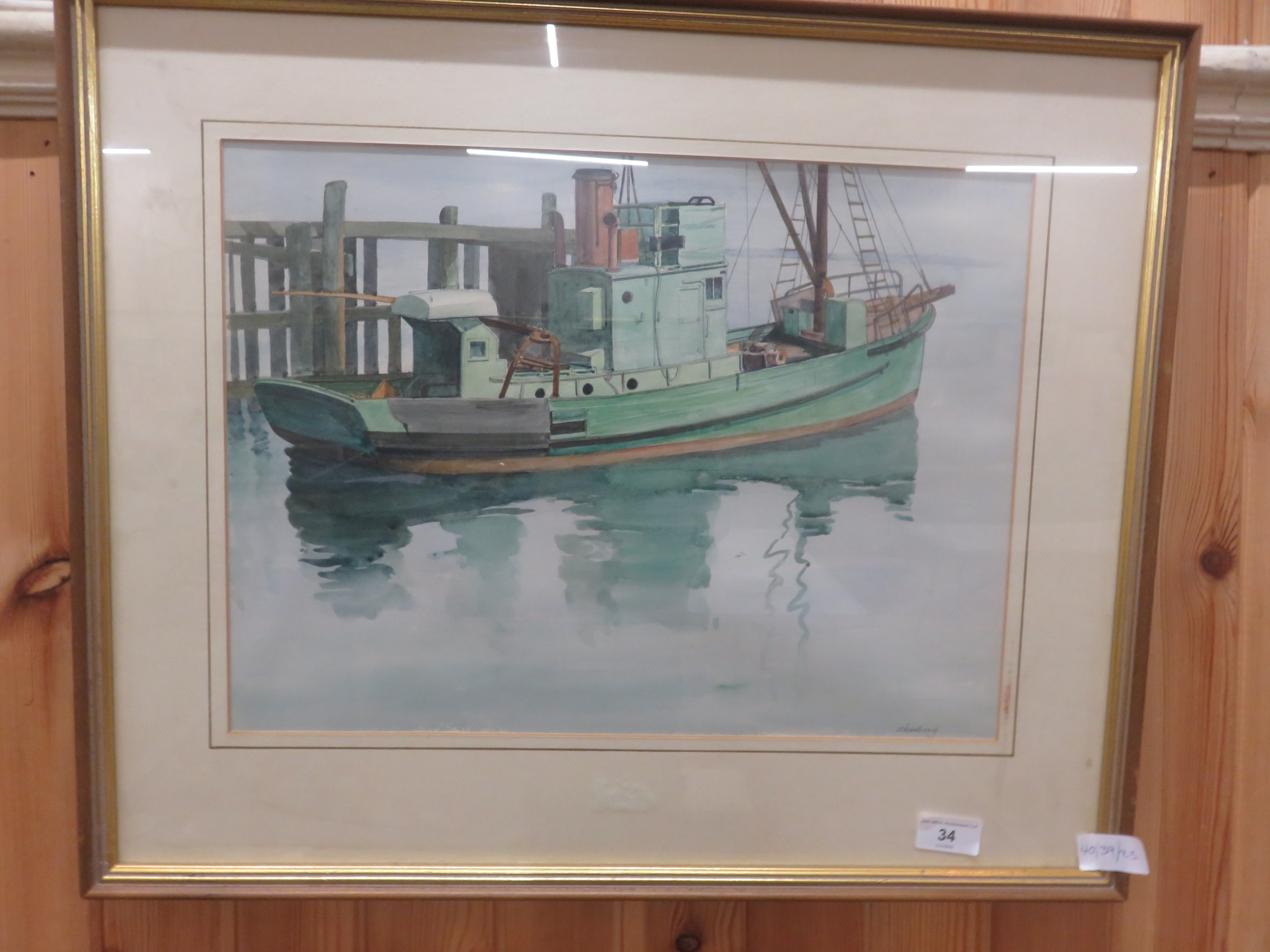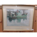 Framed Watercolour - Green Fishing Boat at Anchor - Skeberg