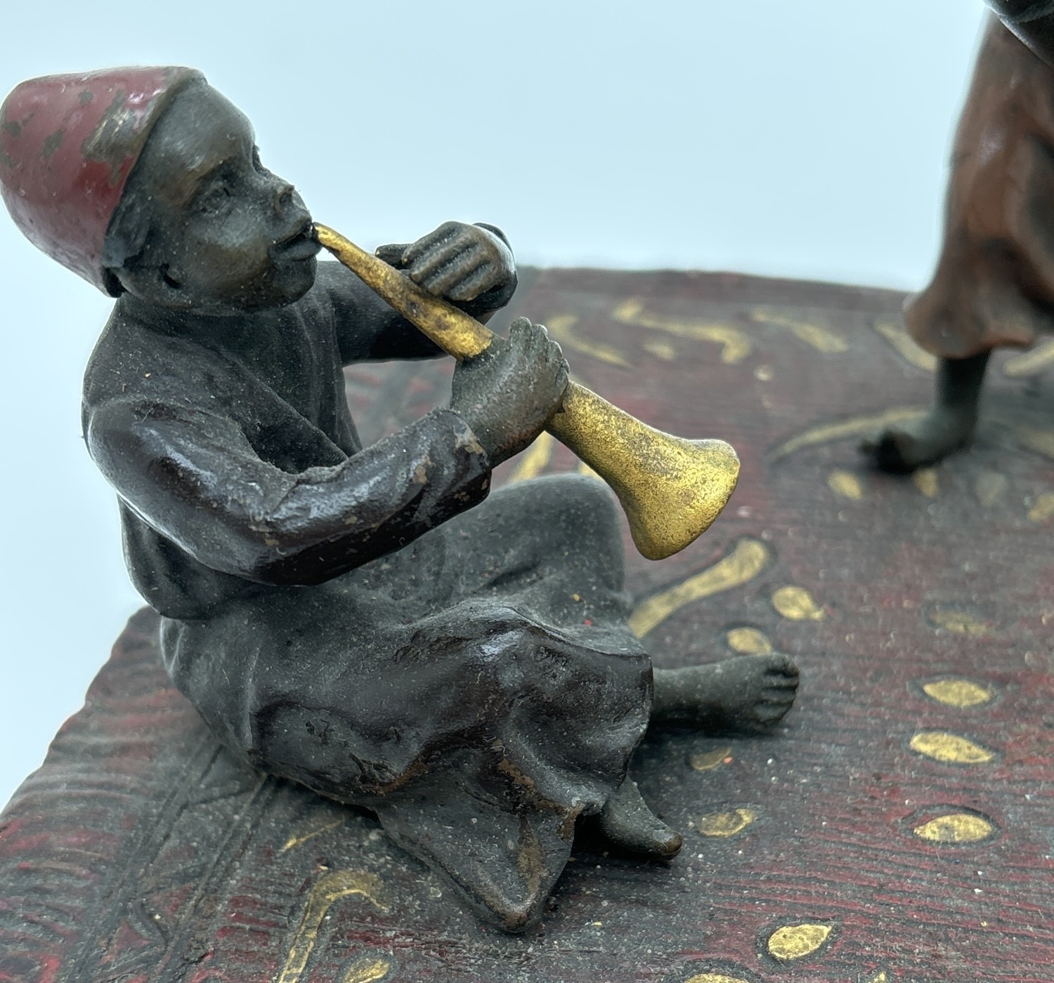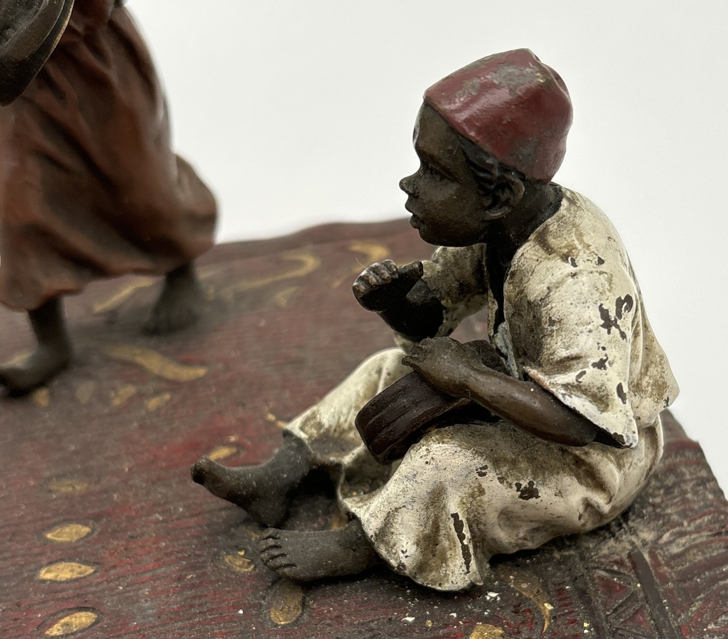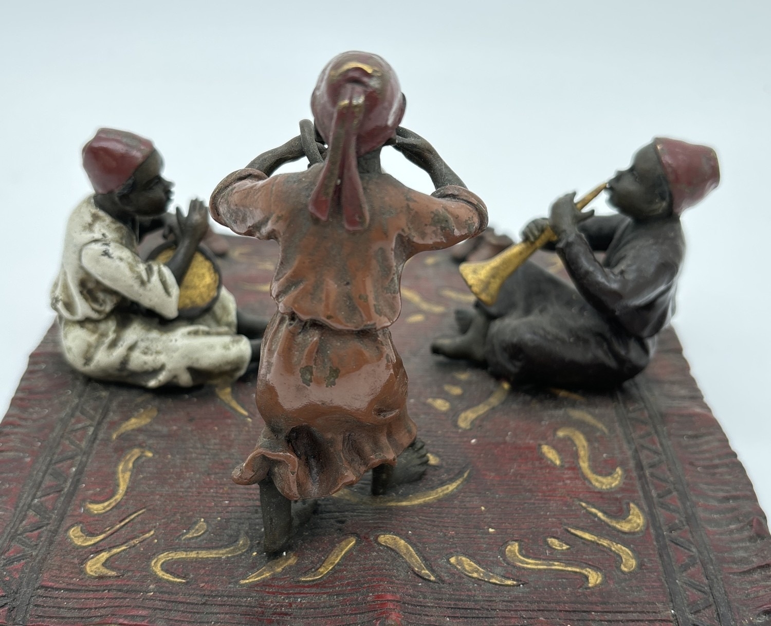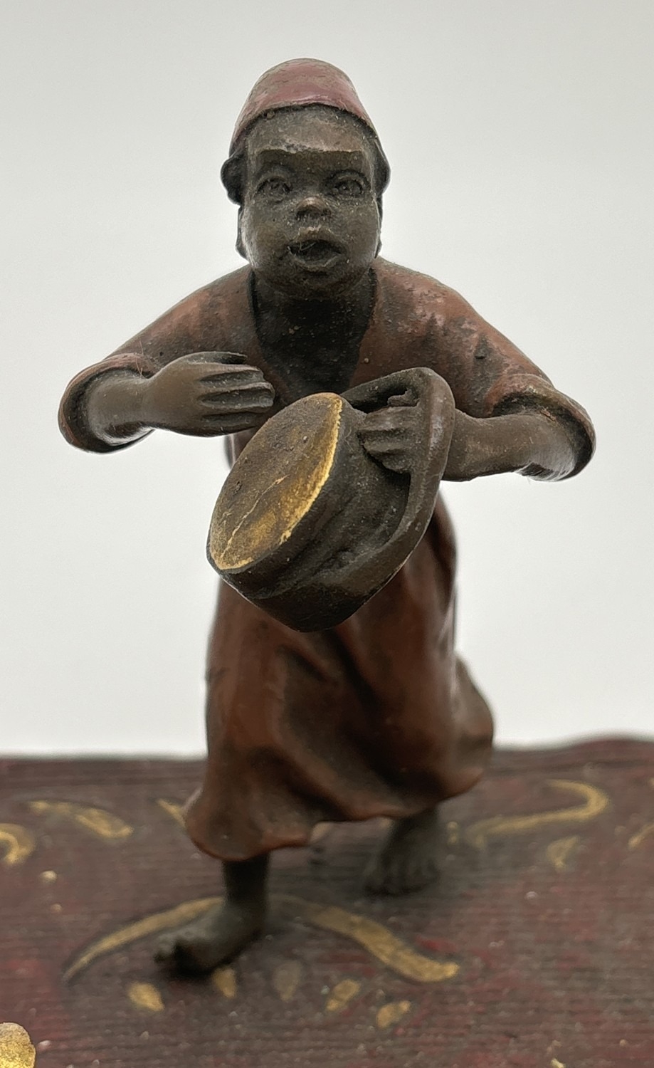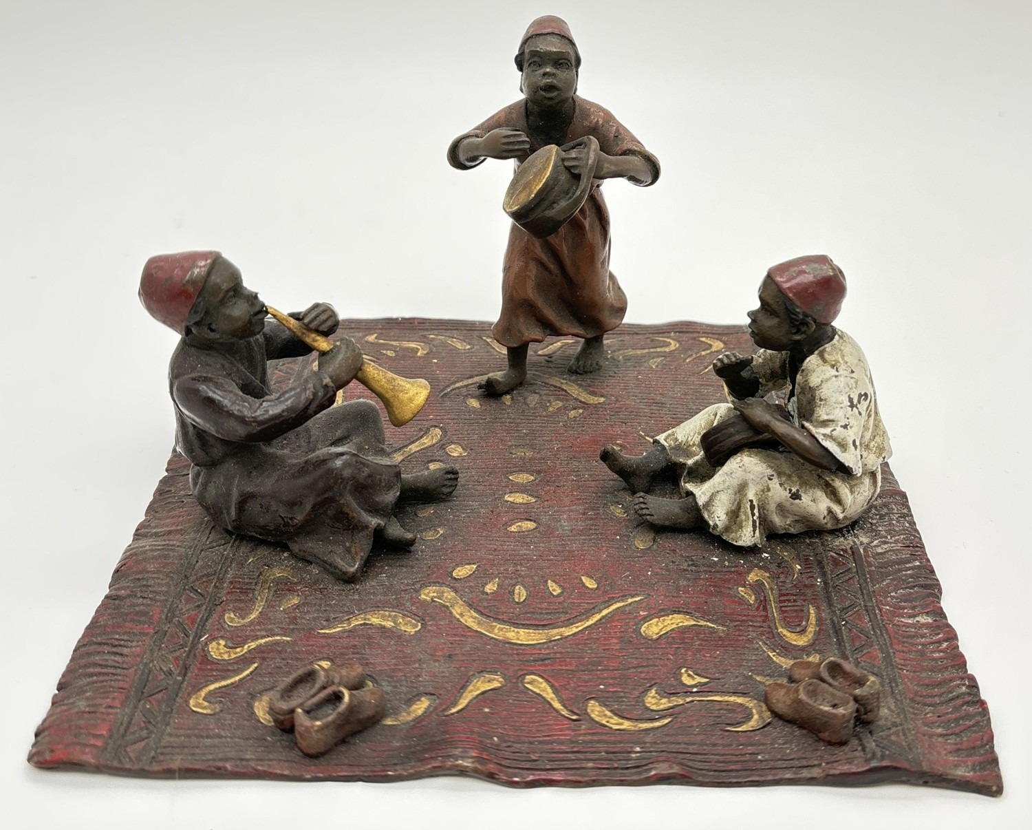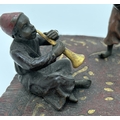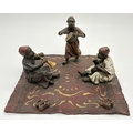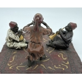 After Franz Bergmann - Arabian style cold painted bronze of children playing musical instruments. Approx. 10cm tall x 17cm wide.