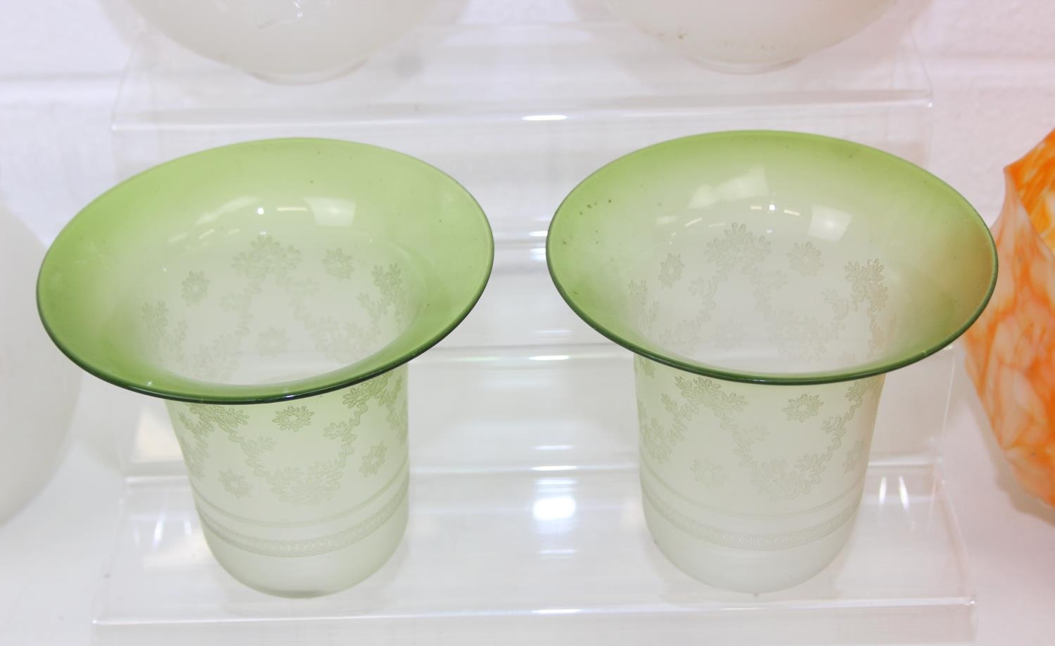 Seven assorted vintage glass light shades, to inc frosted globe shades, speckled glass, etc [7]