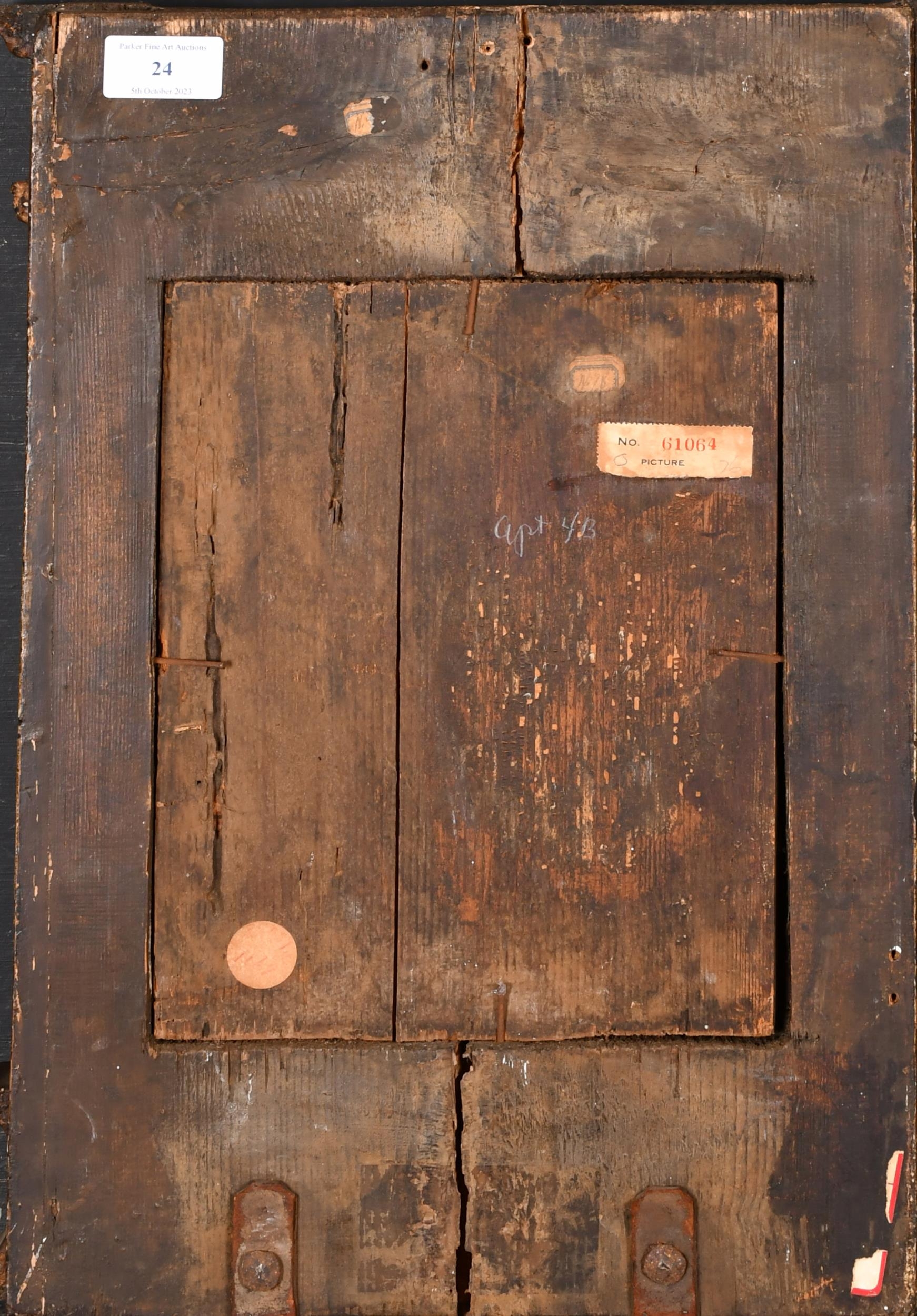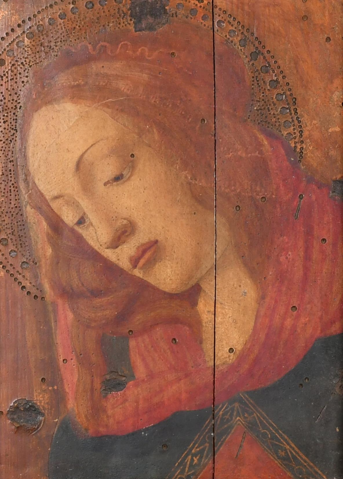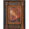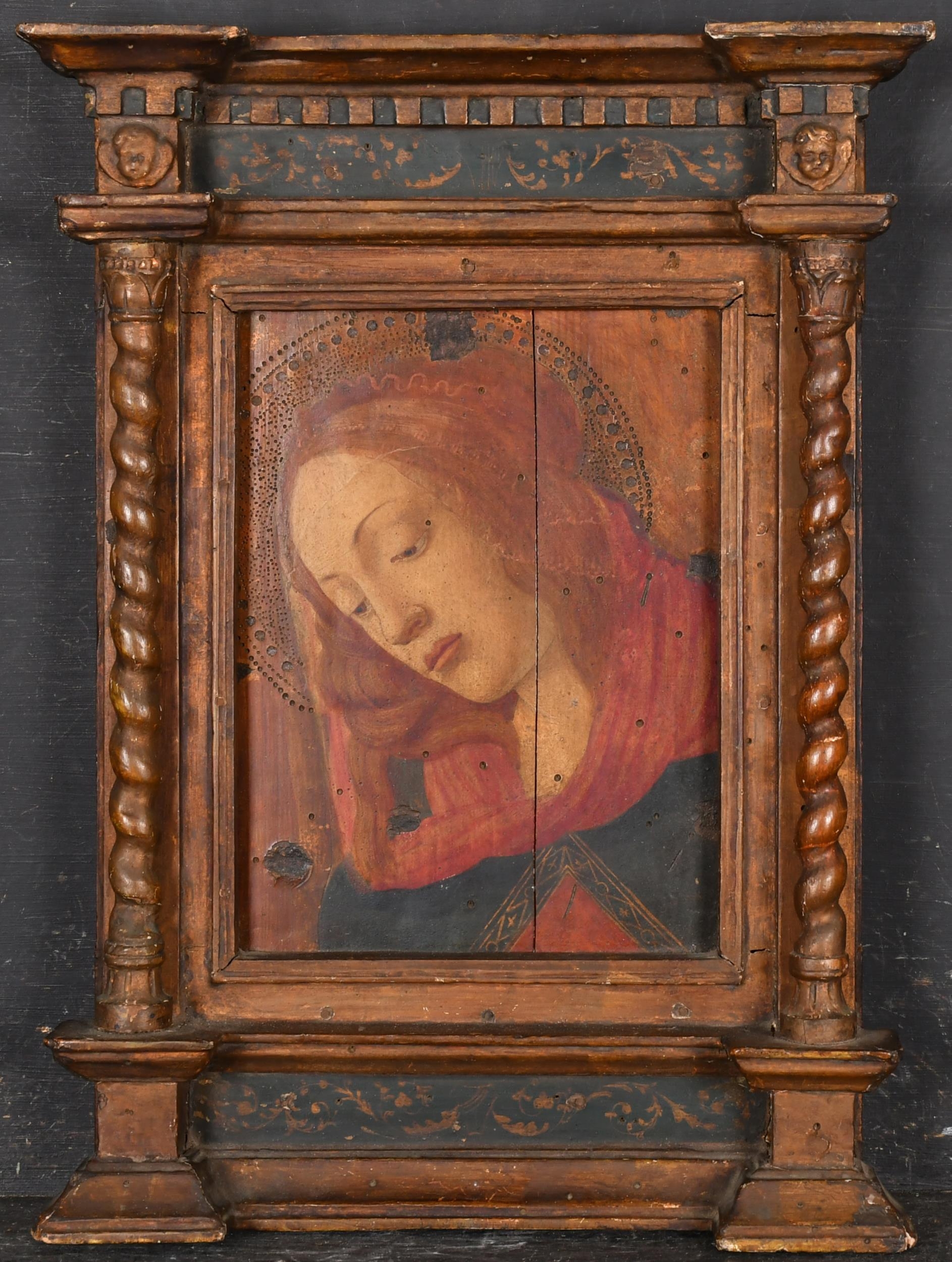 Manner of Alessandro di Mariano di Vanni Filipepo 'Sandro Botticelli' (c.1445-1510) Italian. Head of a Saint, Oil on panel, In a tabernacle frame, 9.75" x 7.75" (24.7 x 19.7cm)