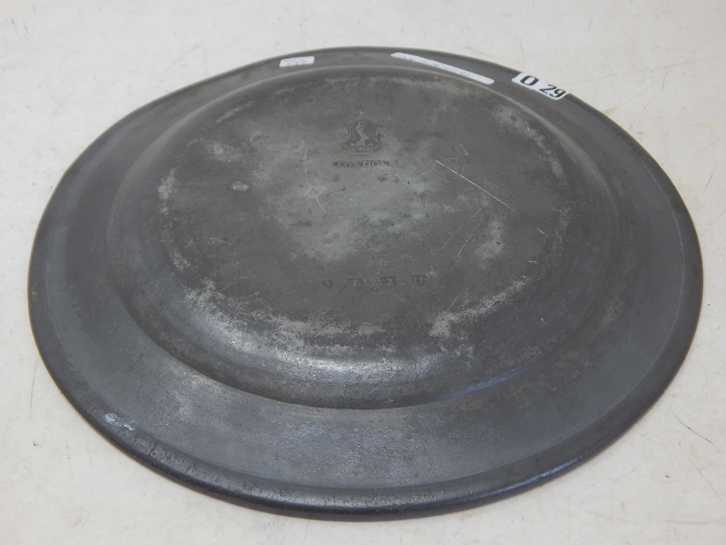 18th Century Pewter Plate c. 1740 by John Duncombe: Diameter 24.5cm