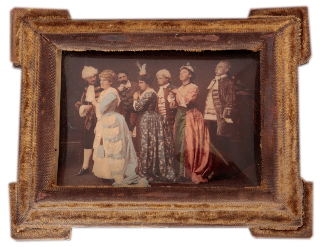A LATE VICTORIAN CRYSTOLEUMdepicting actors of the late 19th century, inscribed with names to the reverse and dated 1886, 9cm x 13cm