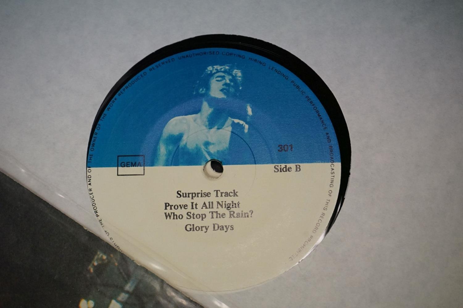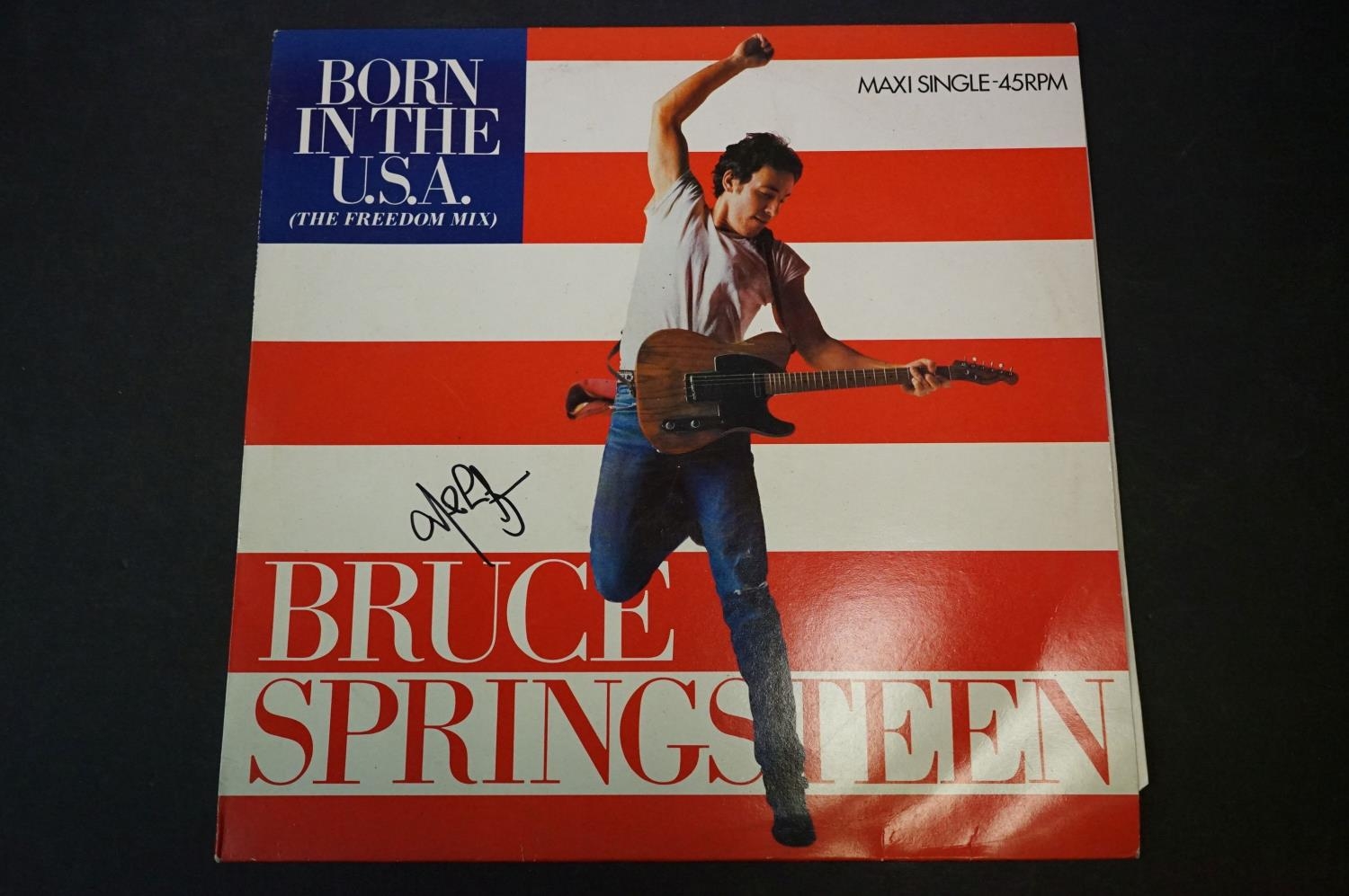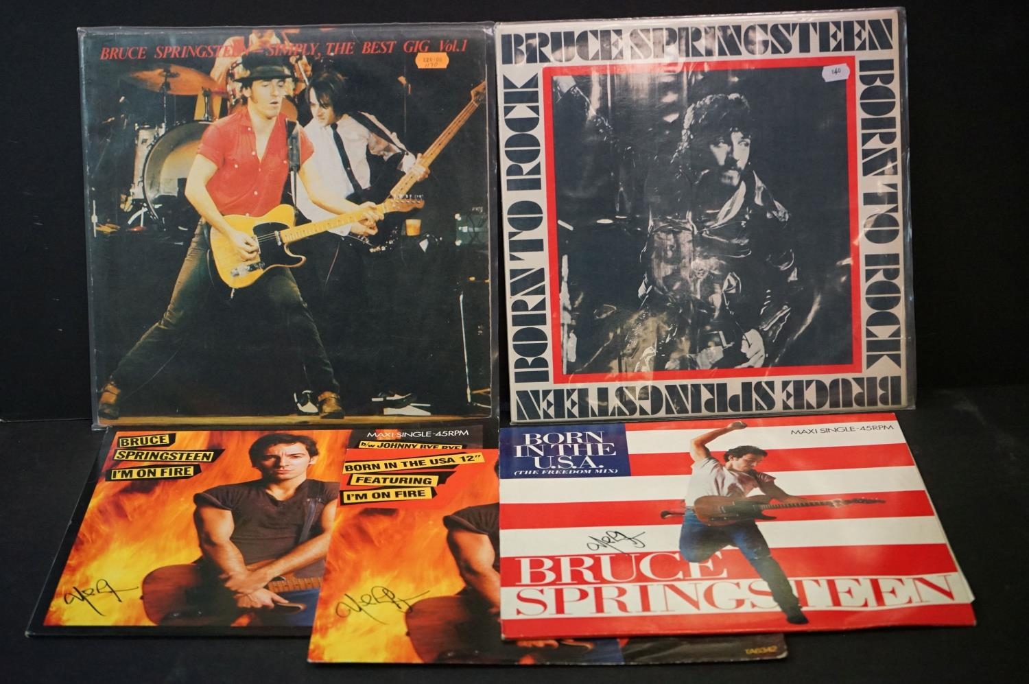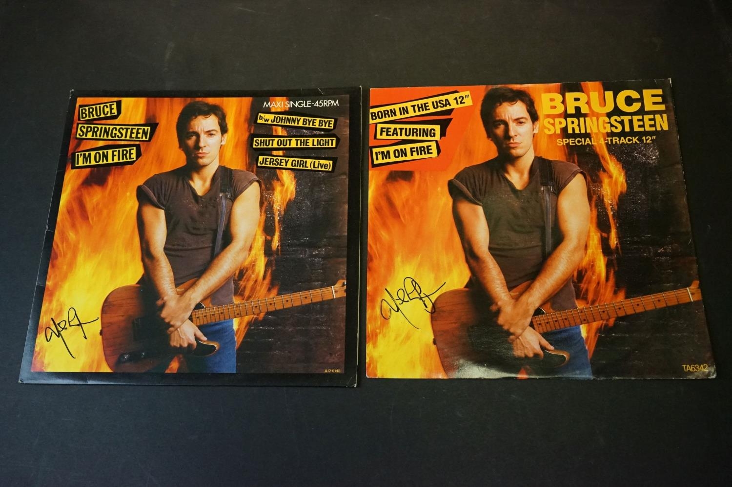 Vinyl & Autographs - Bruce Springsteen 2 private press LP's and 3 12" singles. The singles bearing signature of a band member. From the estate of the late Julia Trangmar