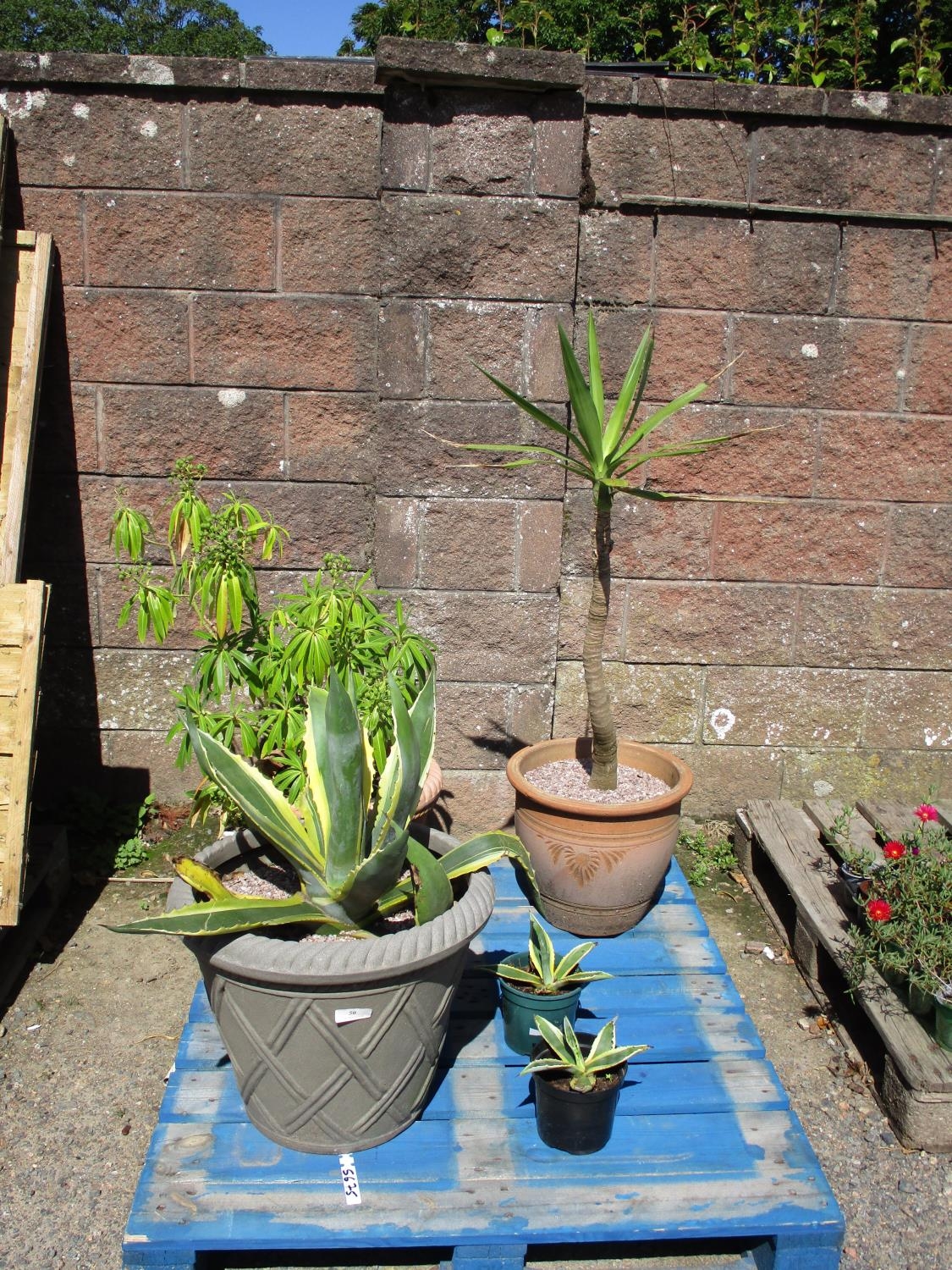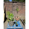 Three Agave plants, a Palm and one other