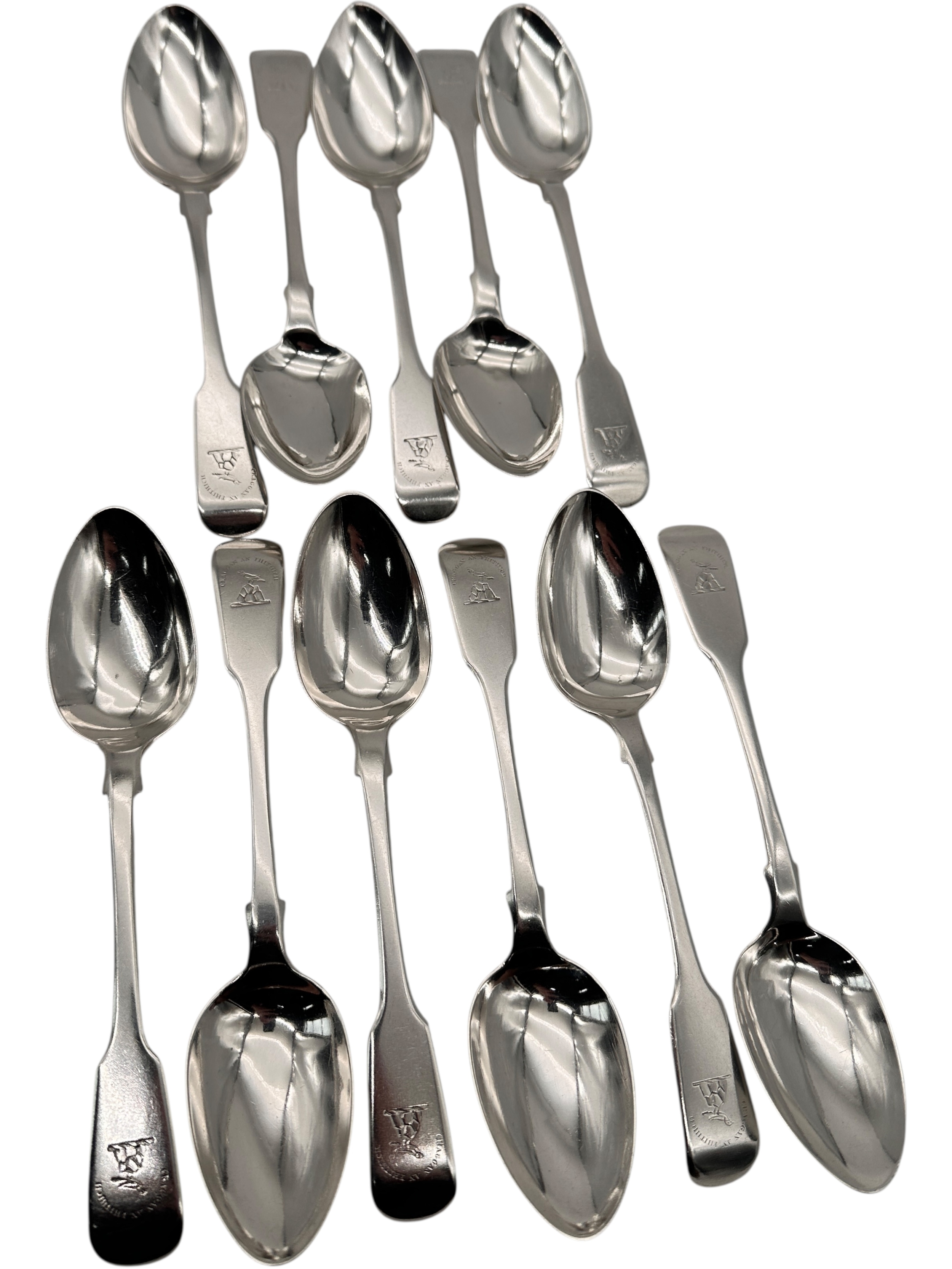 Set of Eleven Victorian Hallmarked Silver Dessert Spoons. Edinburgh 1846 by James & Walter Marshall. 460g