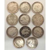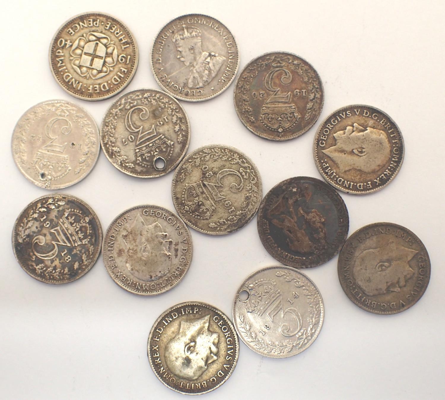 Mixed silver threepences, three holed (13). P&P Group 1 (£14+VAT for the first lot and £1+VAT for subsequent lots)