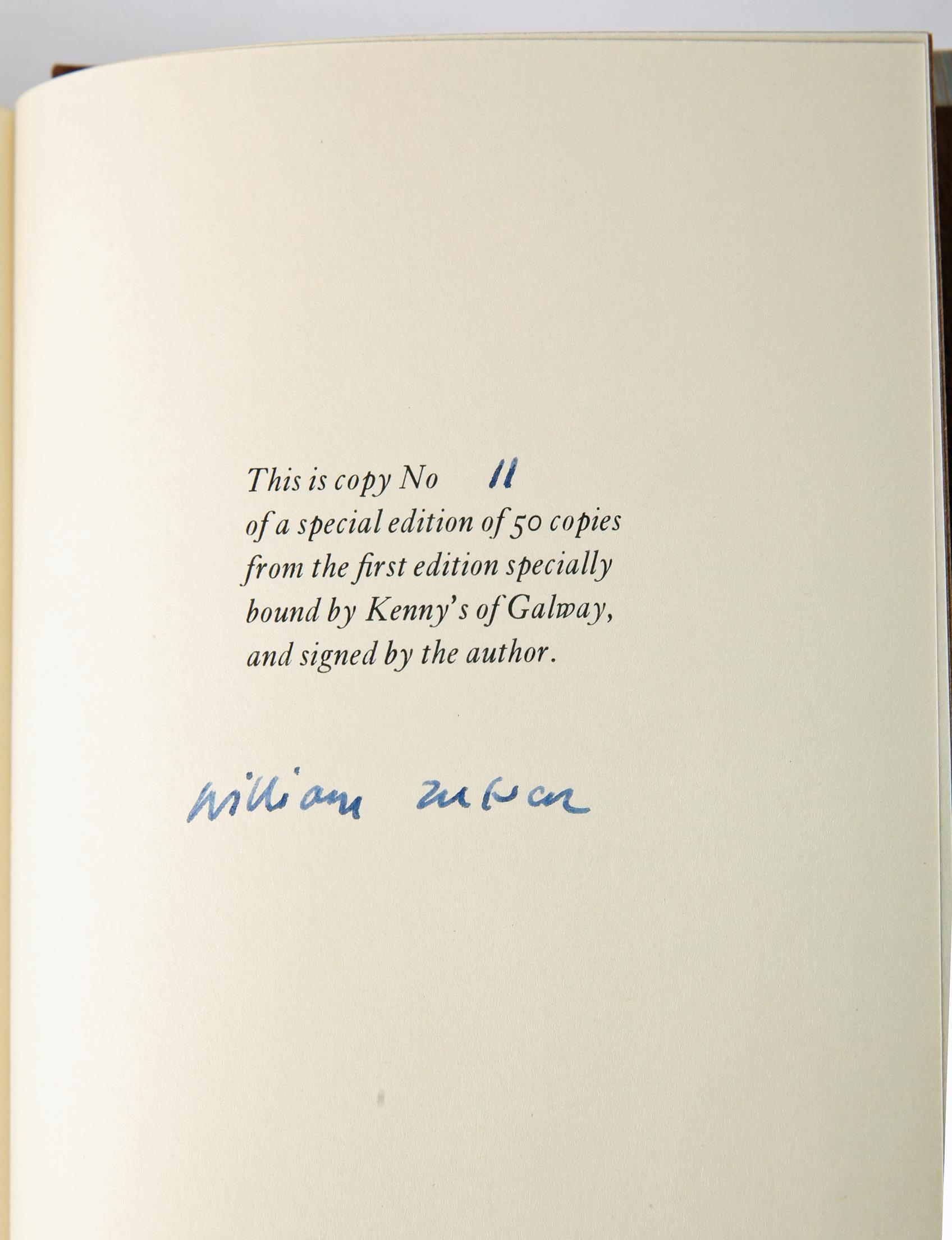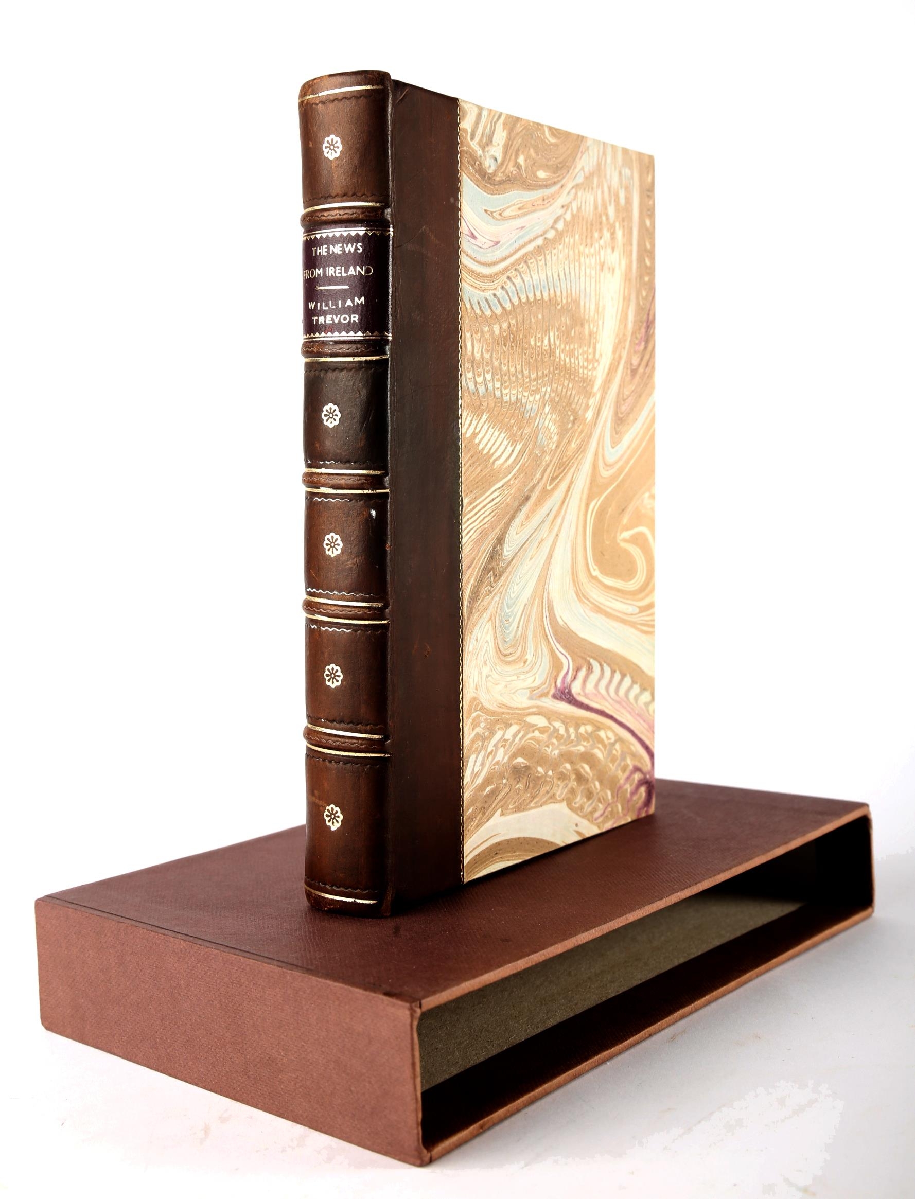 Trevor, William. The News From Ireland, signed limited edition, Bodley Head, London, 1986, number 11 of a special limited edition of 50 copies specially bound by Kenny's Galway and signed by the author, quarter calf, in publisher's slipcase, very fine (VF).