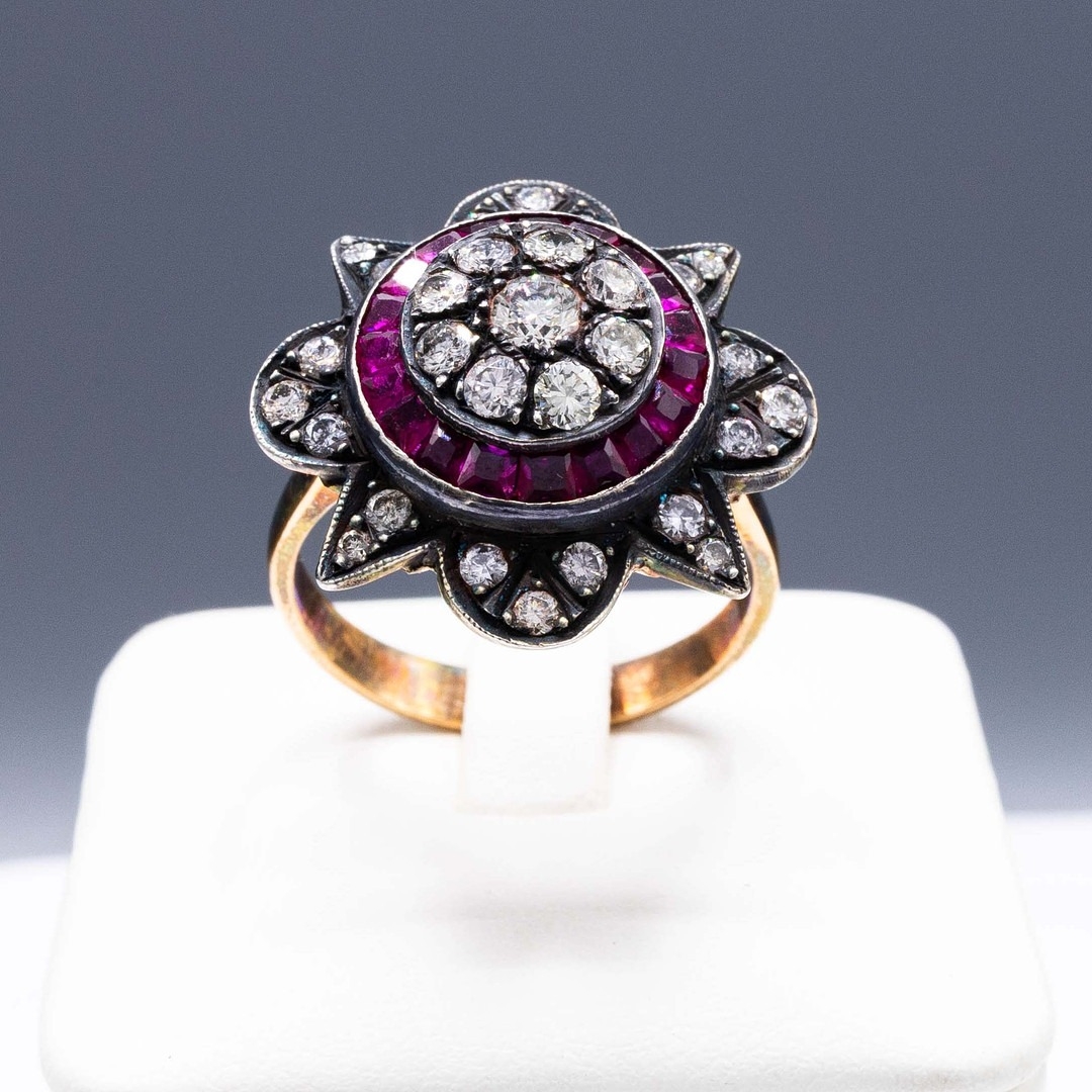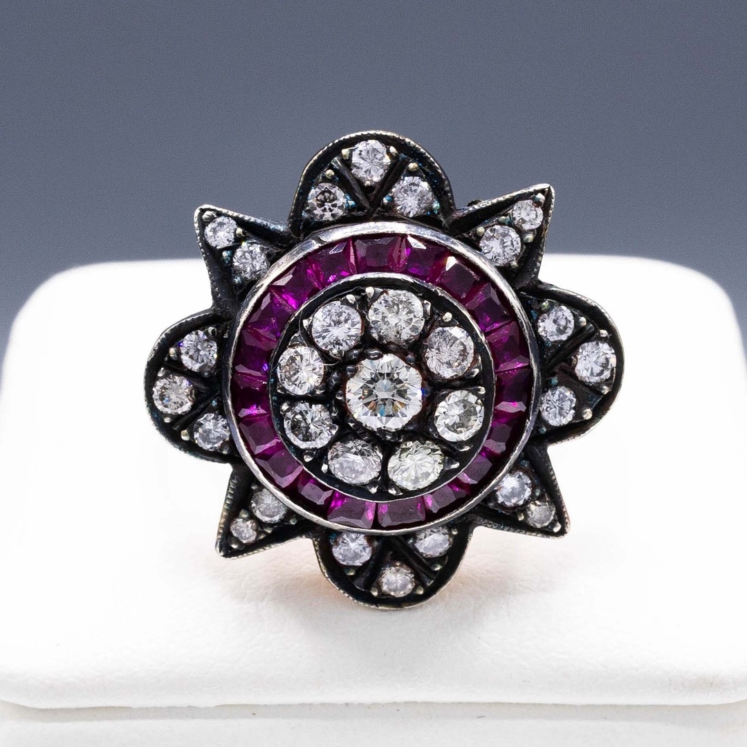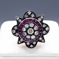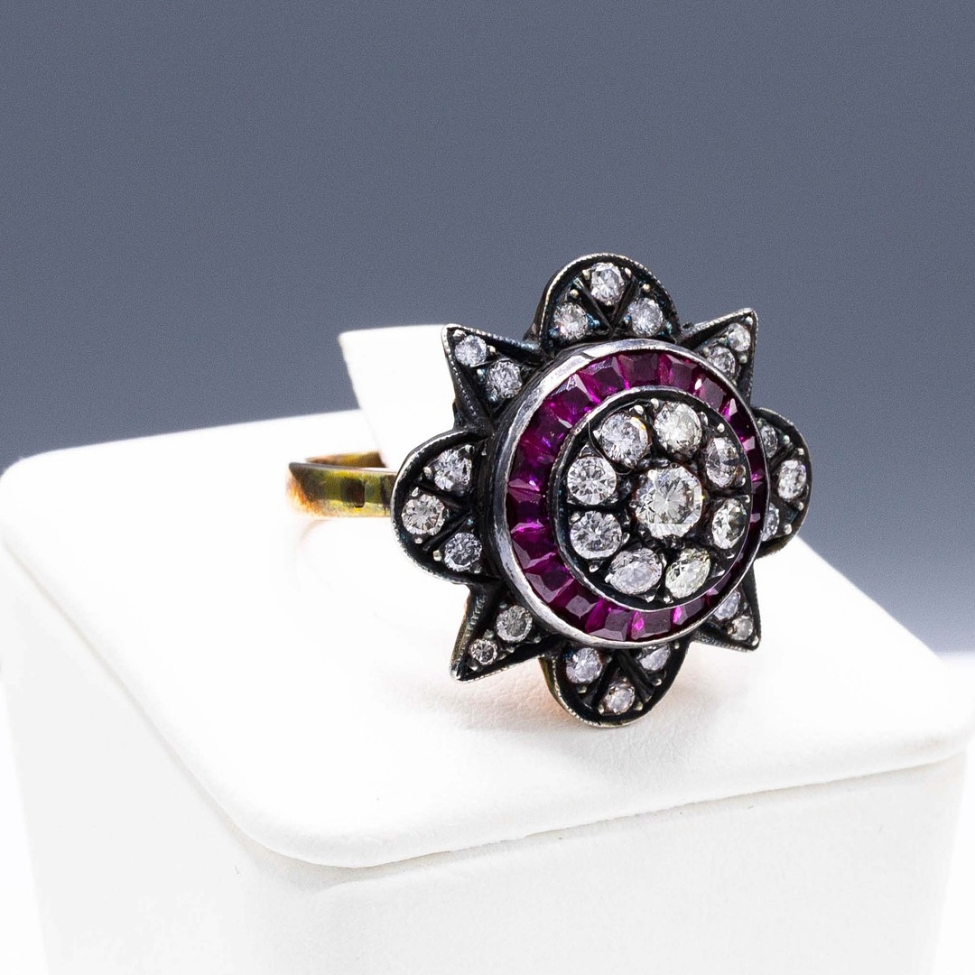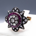 AN 8CT RUBY AND DIAMOND CLUSTER RING. the star-shaped dress ...