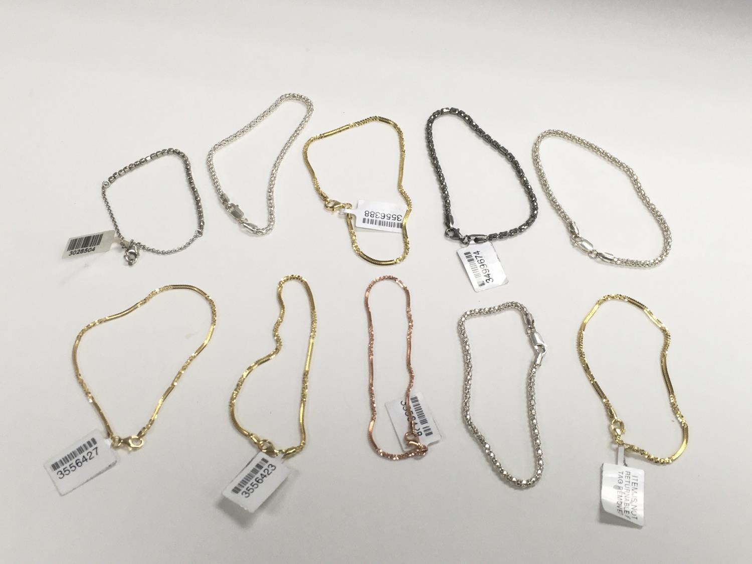 Ten brand new silver and silver gilt bracelets.