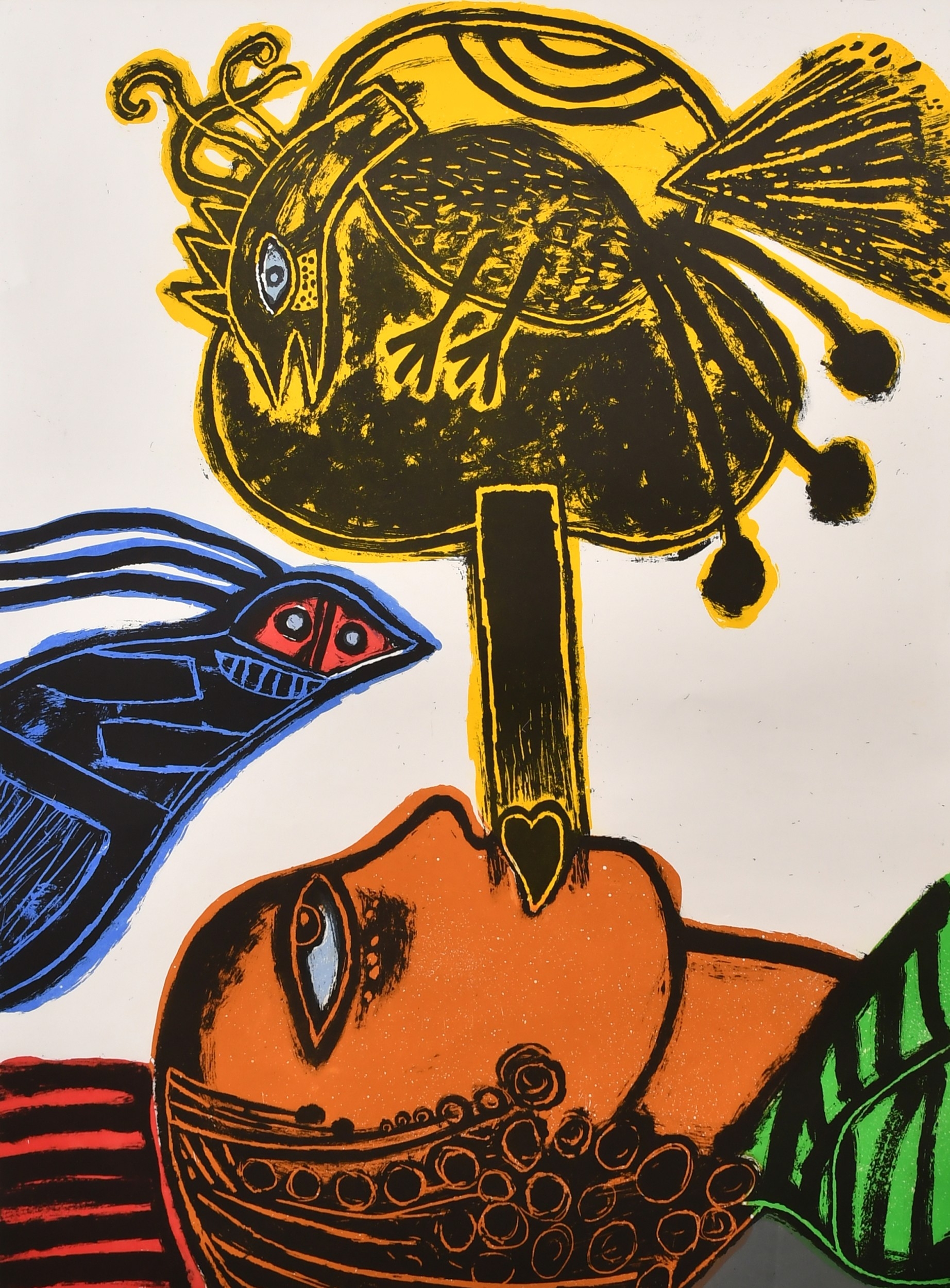 Guillaume Cornelis van Beverloo 'Corneille' (1922-2010) Belgian. "L'africaine', Colour aquatint etching, Signed 'Corneille', dated 92/94 and numbered 59/60 in pencil, unframed 47" x 35" (119.4 x 88.9cm)
