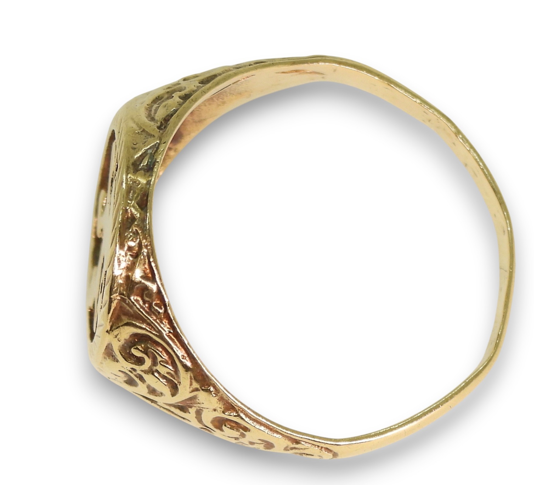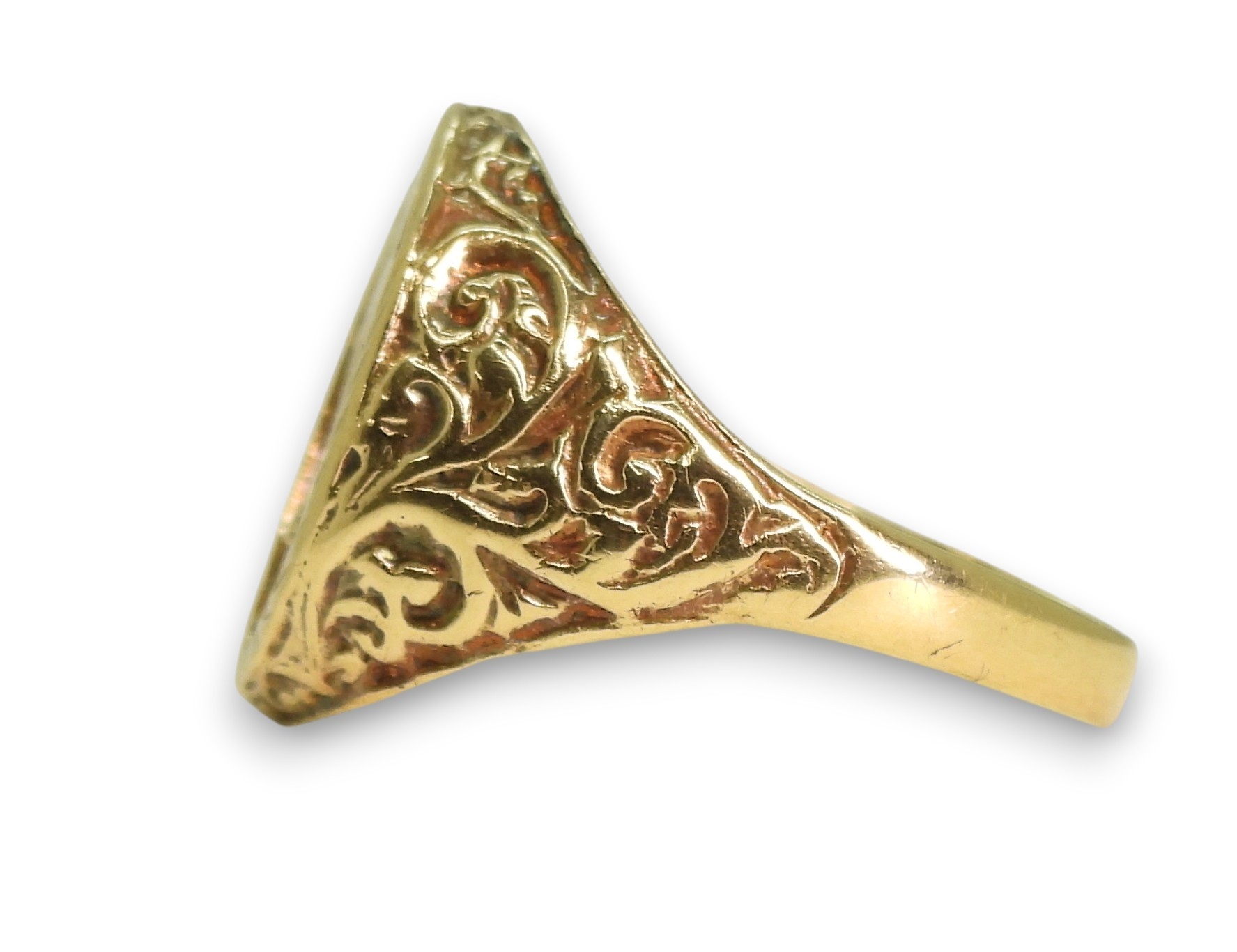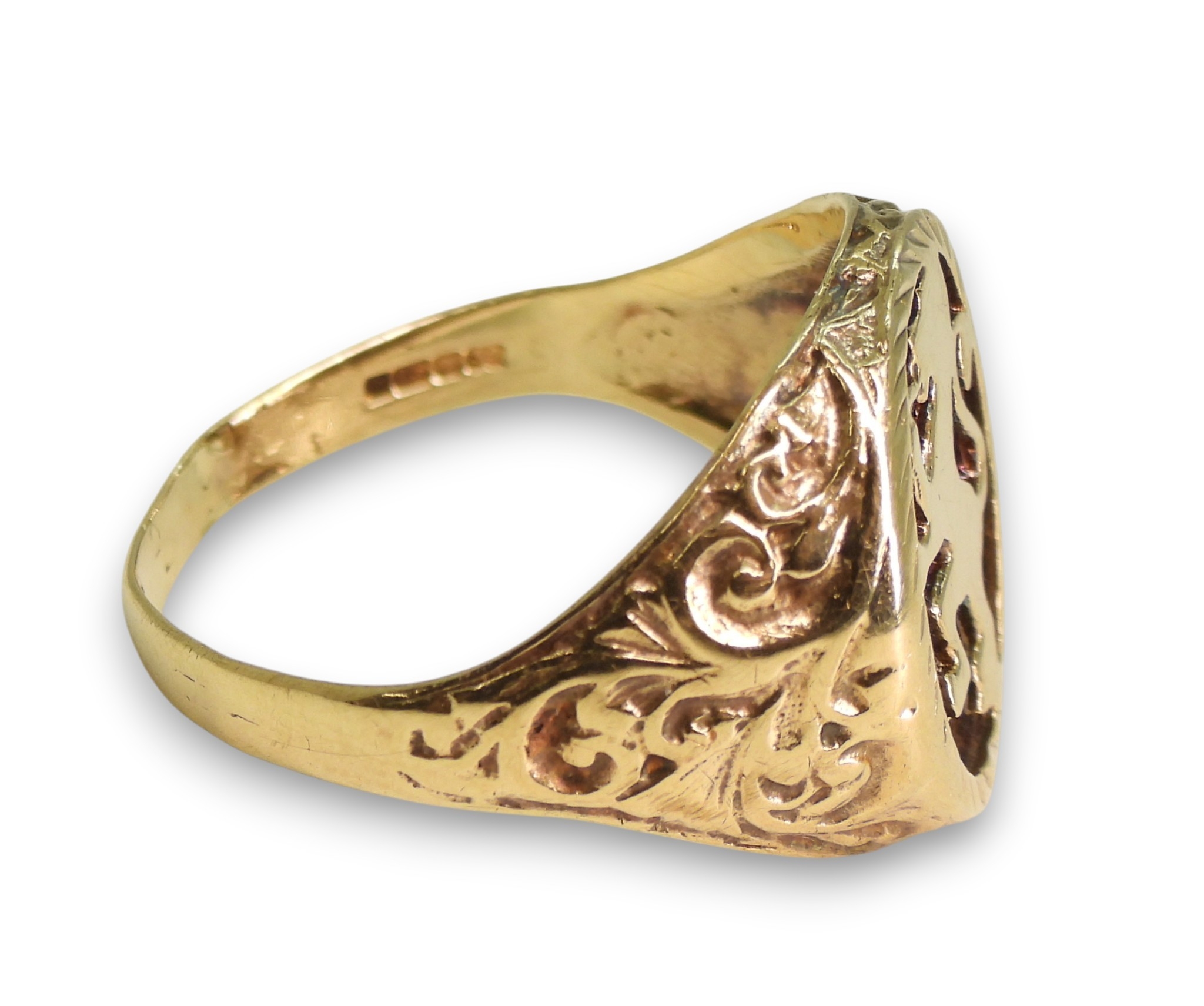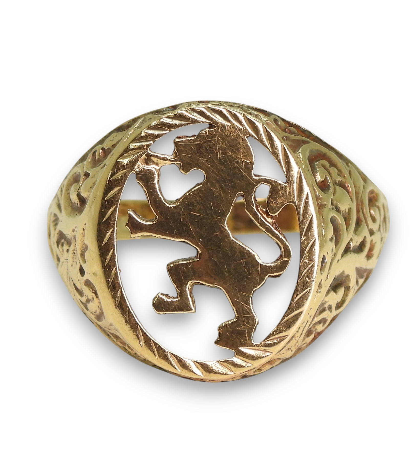 A 9ct gold Scottish Lion ring, size T1/2, weight 3.6gms
