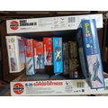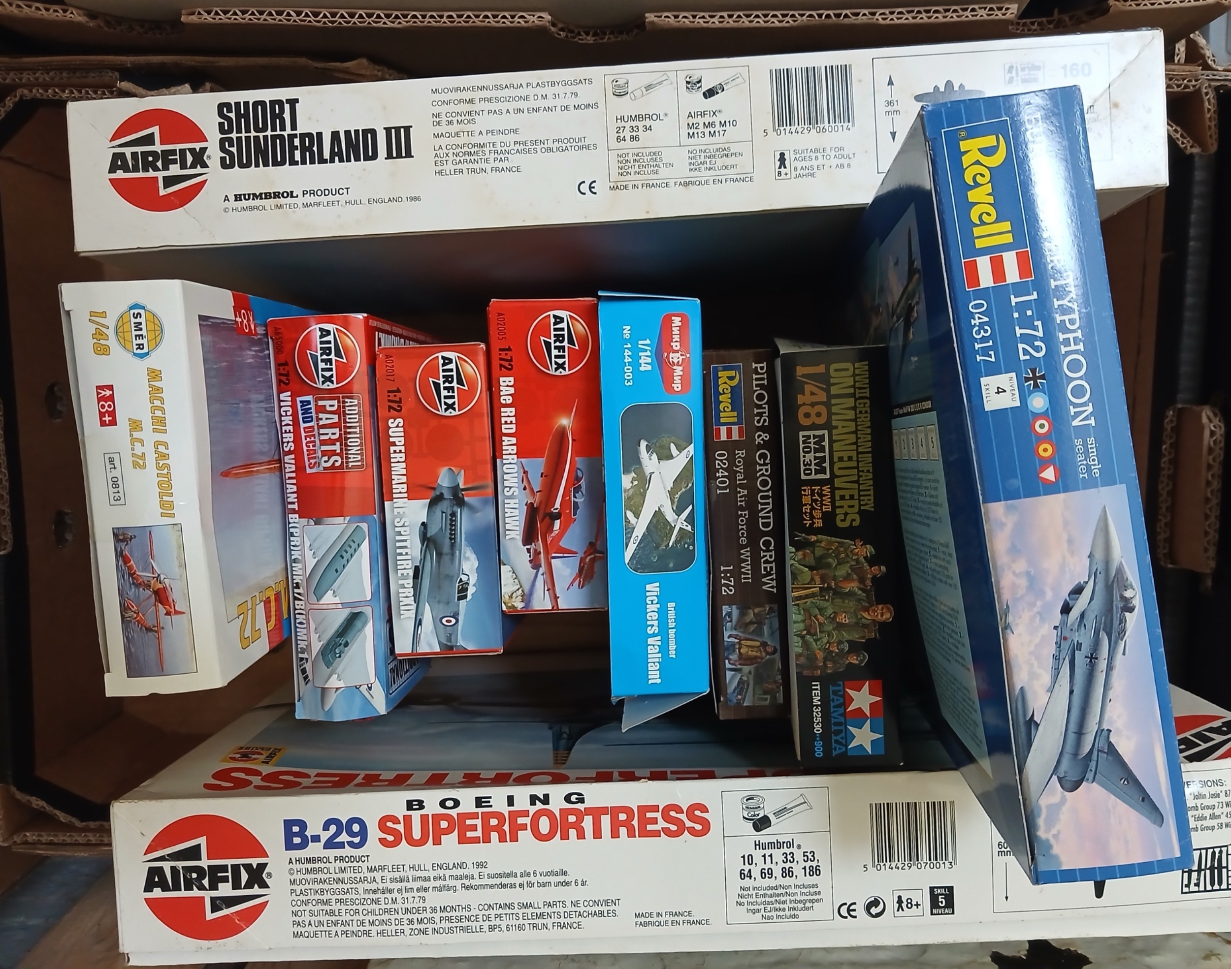 A box of unbuilt model kits.