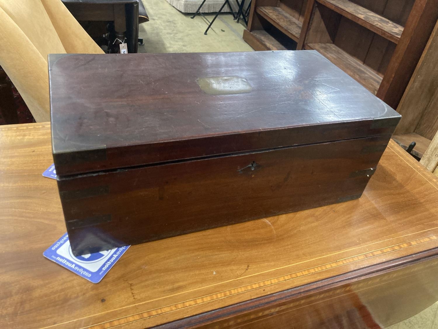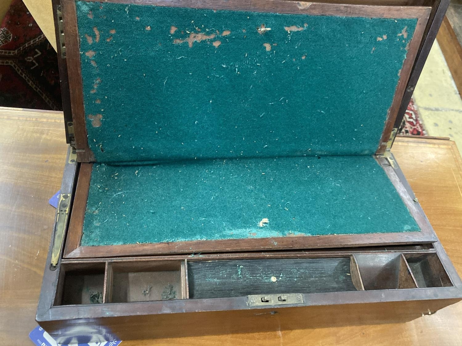 A George III mahogany writing slope, width 50cm, depth 25cm, height 19cm