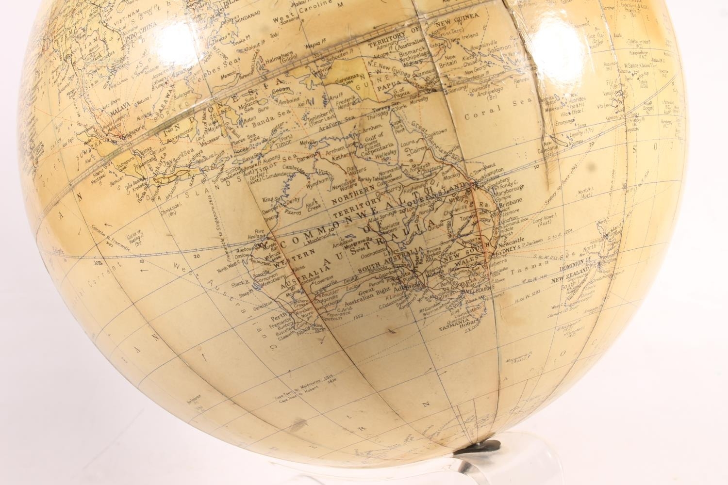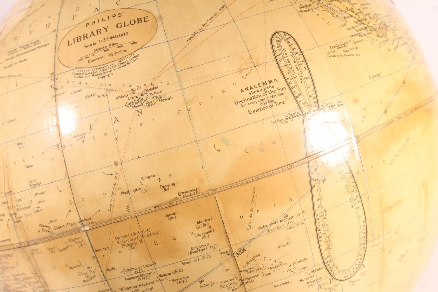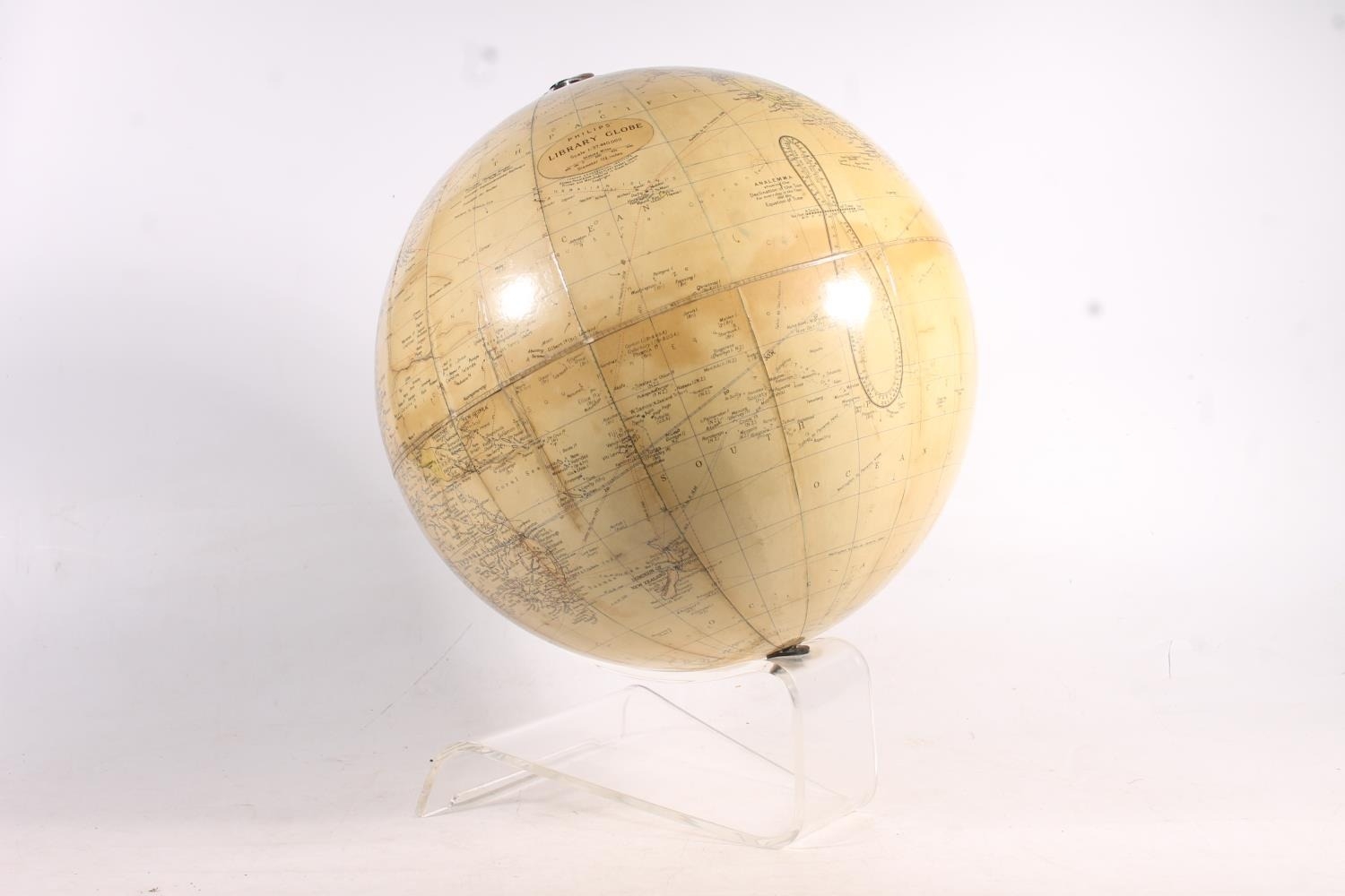 Vintage Phillips terrestrial library globe, 13.5" diameter.