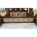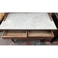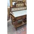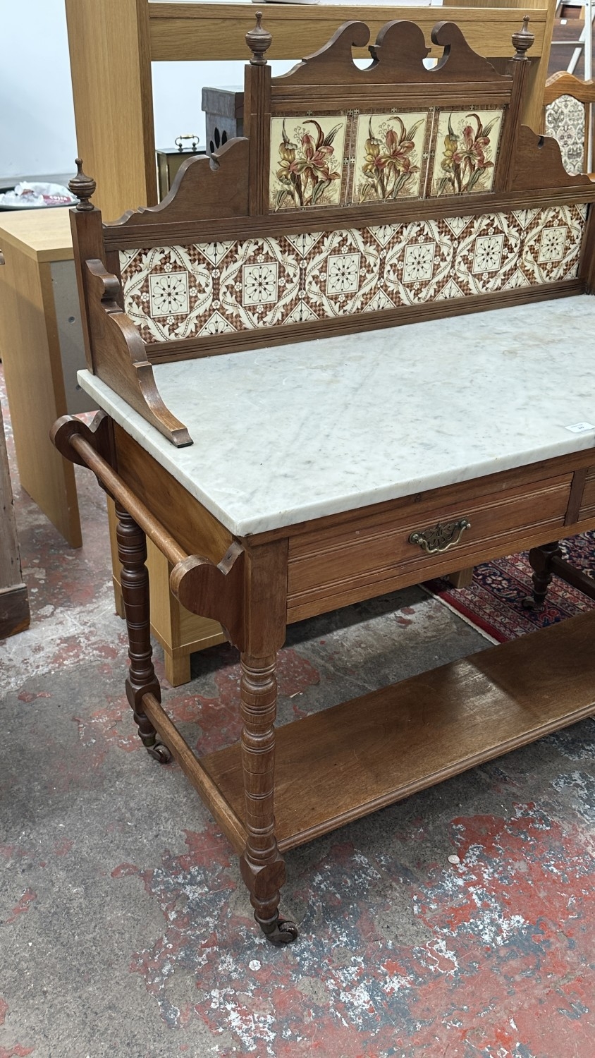 An Edwardian walnut and marble top washstand with ceramic tile splashback - approx. 121cm high x 120cm wide x 53cm deep