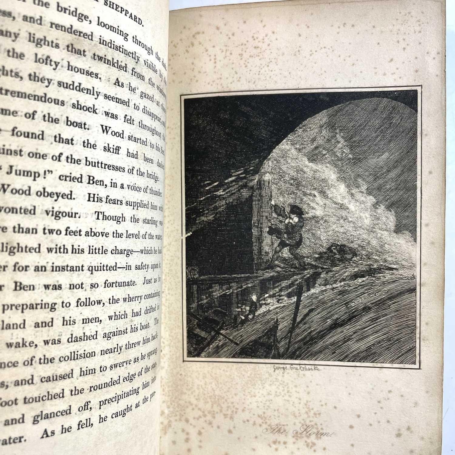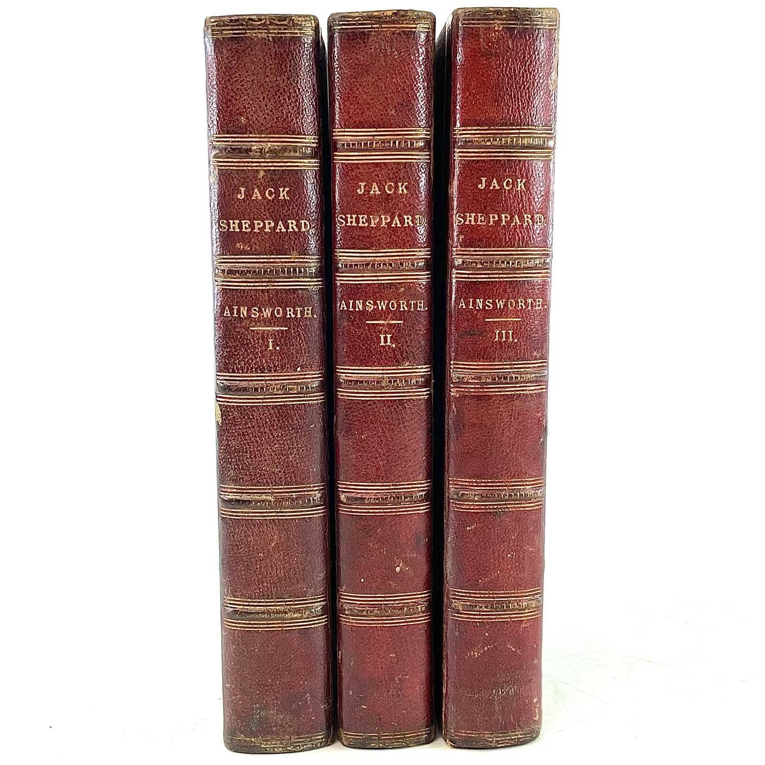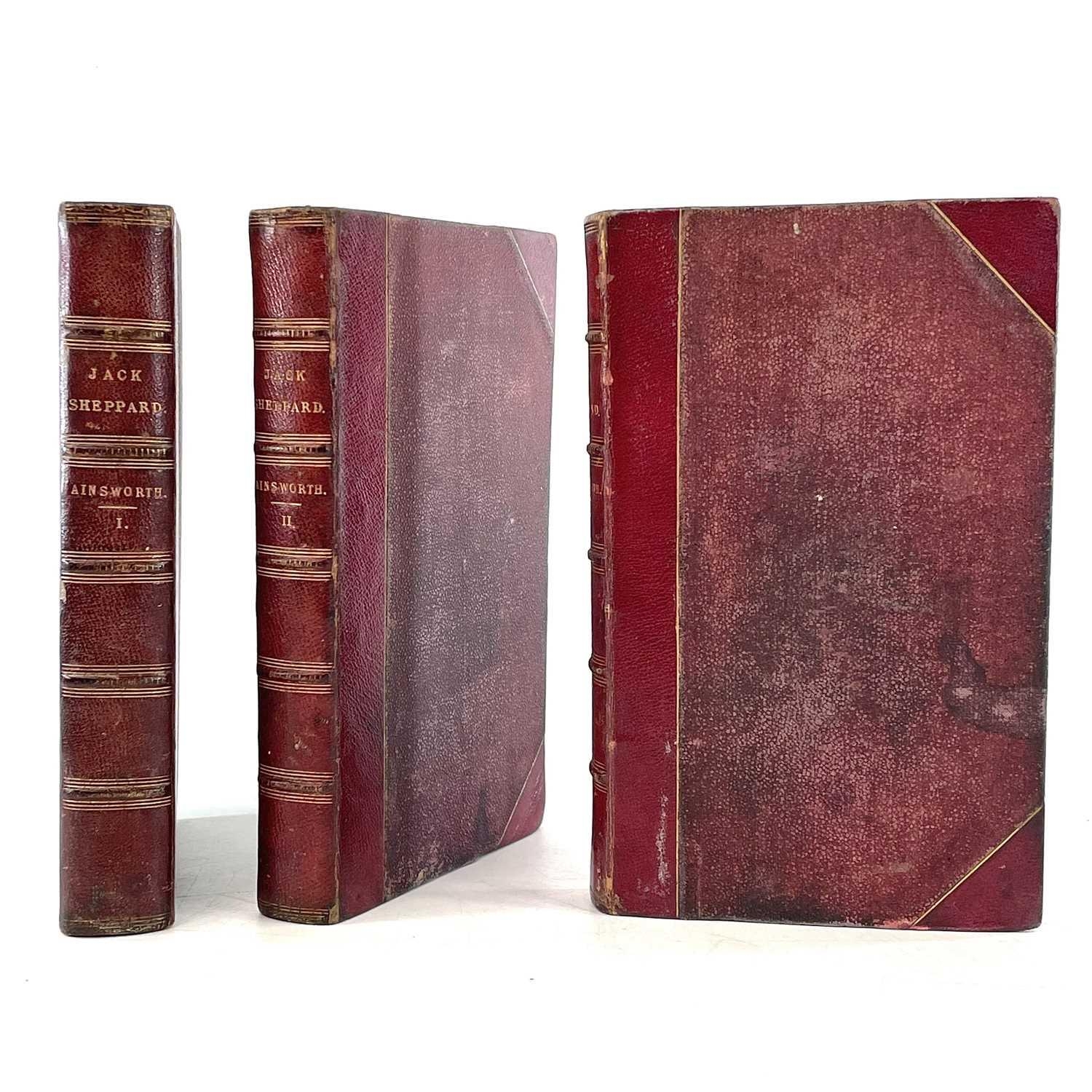 W. HARRISON AINSWORTH. 'Jack Sheppard. A Romance,' triple decker set (three vols), uniformly bound in half ruby leather, illustrated by George Cruikshank, Richard Bentley, London, 1839. (3)