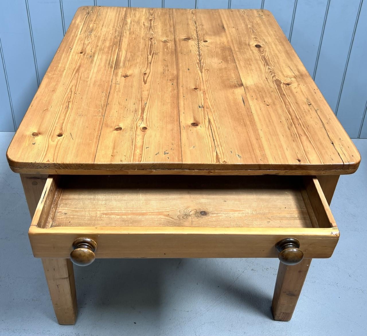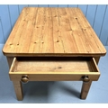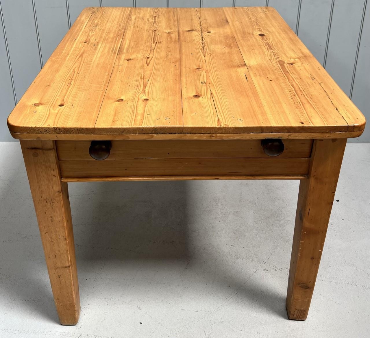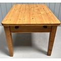 A solid pine kitchen table, with single frieze drawer. Dimensions(cm) H75, W80, D94.