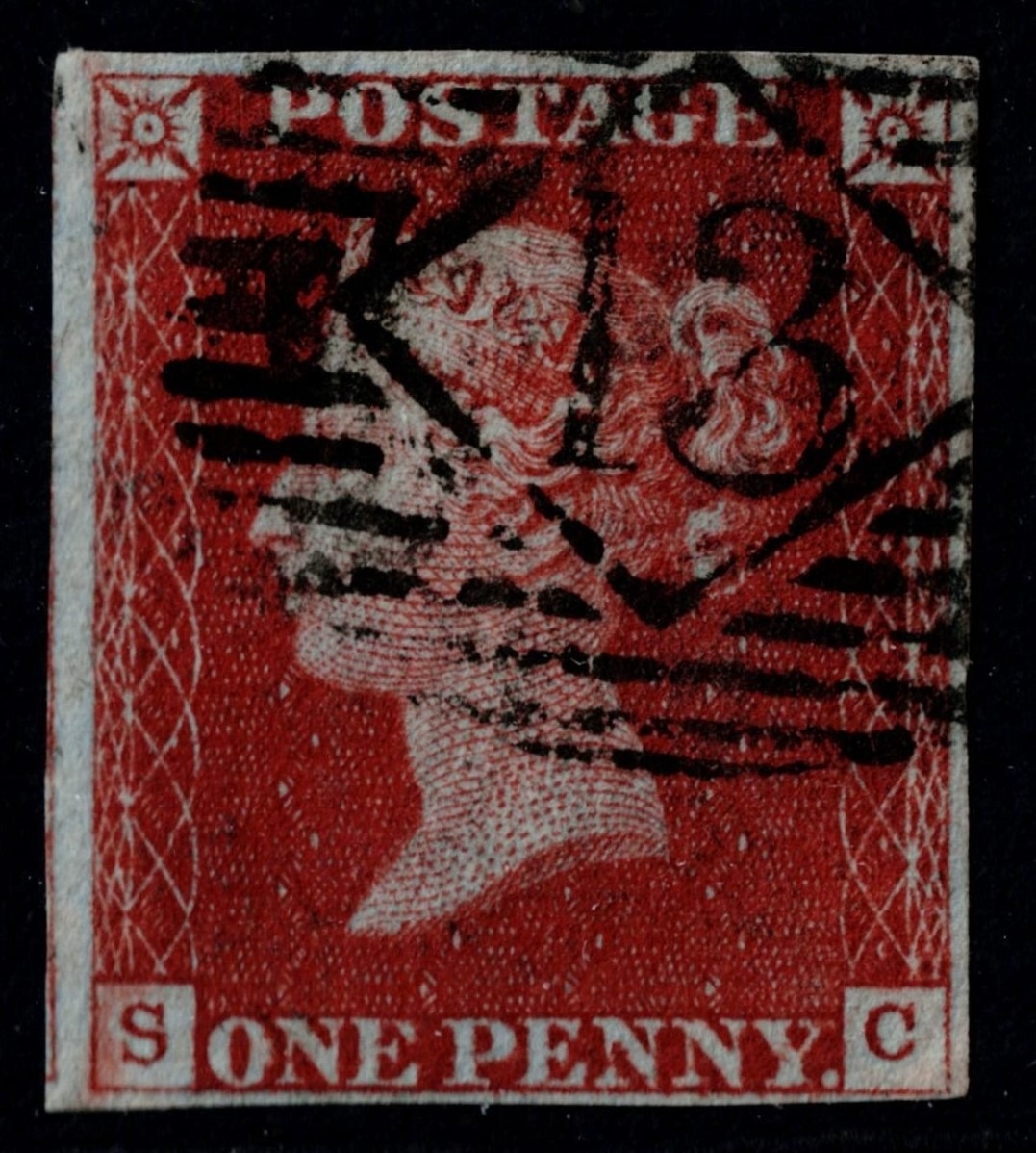 GB 1841 1d red plate 42 SC vfu 4m with crisp upright inland office 13 sg8 Spec.BS31 Cat.£50