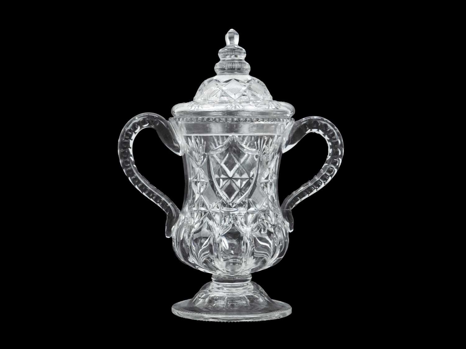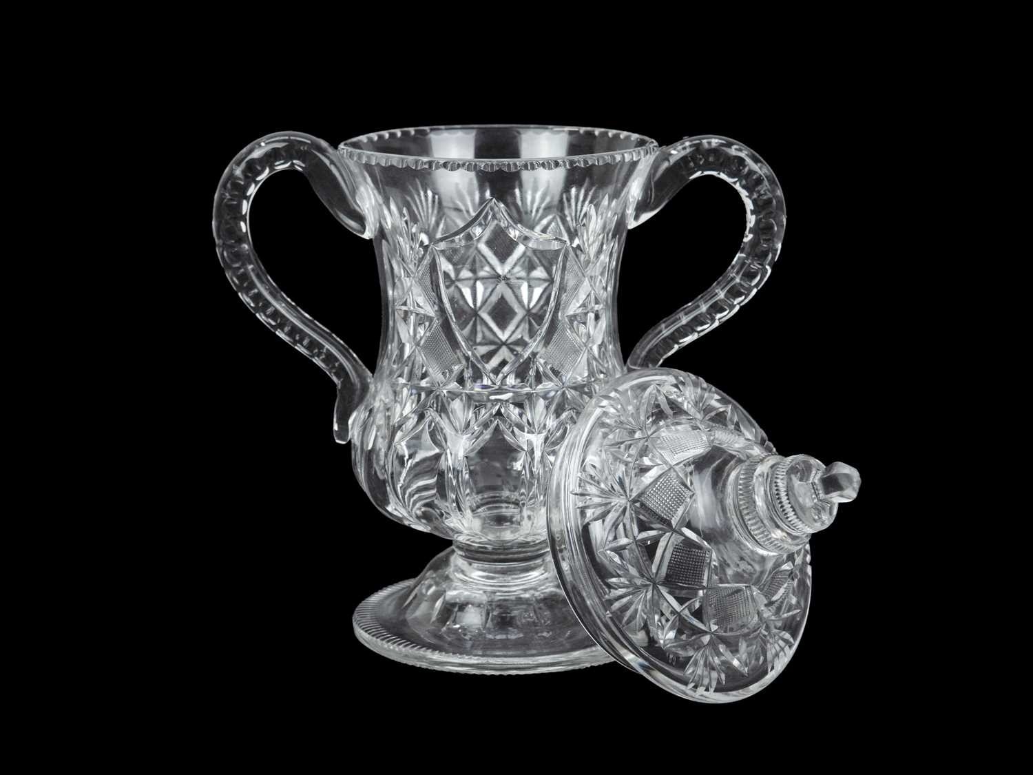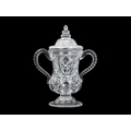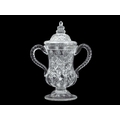A Stevens and Williams Royal Brierley Crystal glass cup and cover. Circa 1900, of twin handled waisted form, with hobnail and floral cut decoration, etched mark, height 28cm. There is no damage and no scratching to this lidded cup and cover.