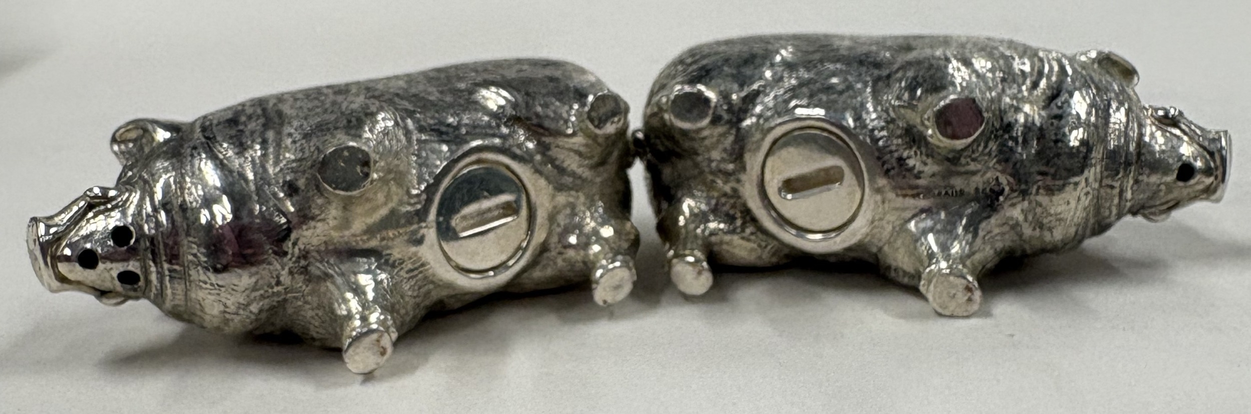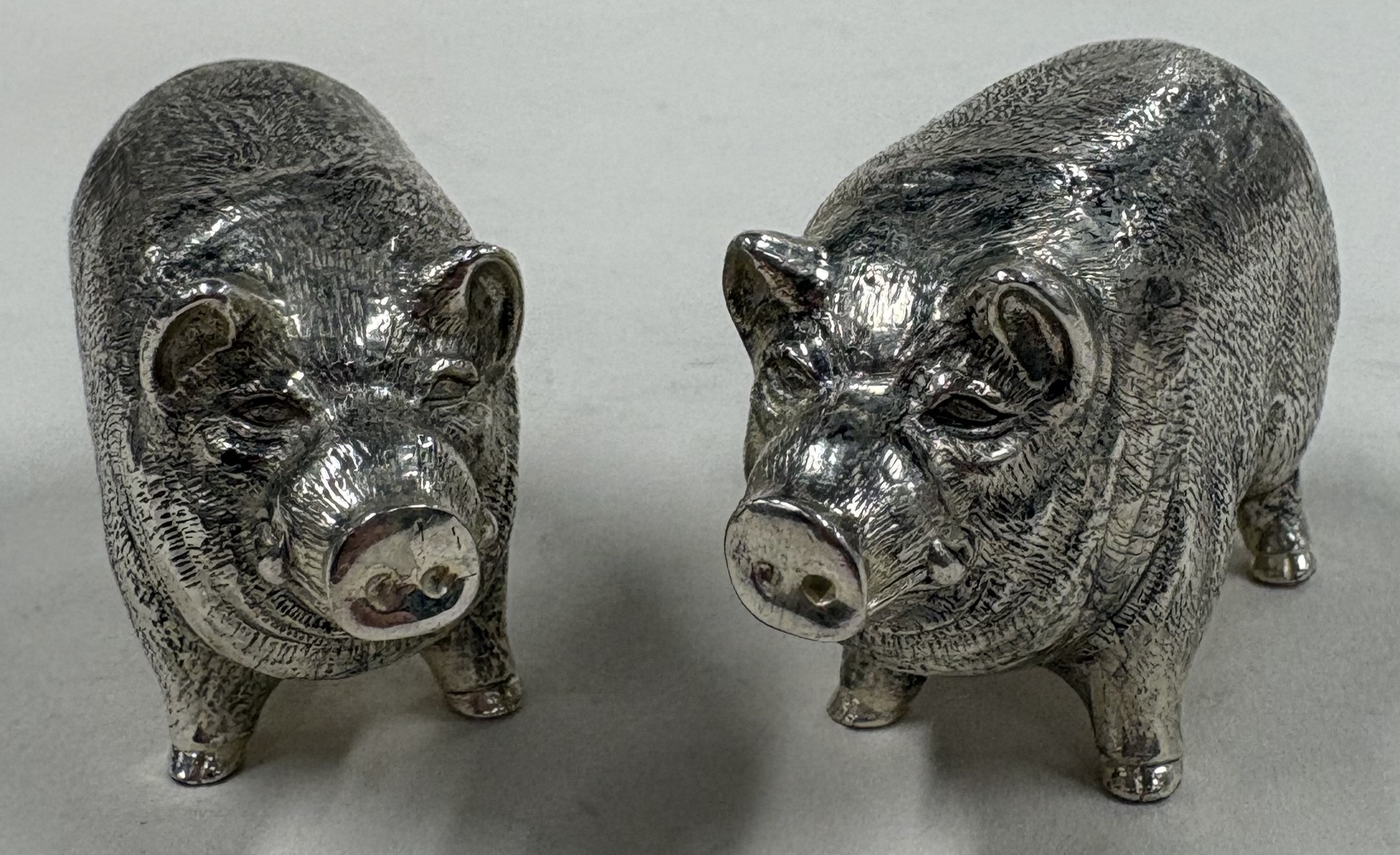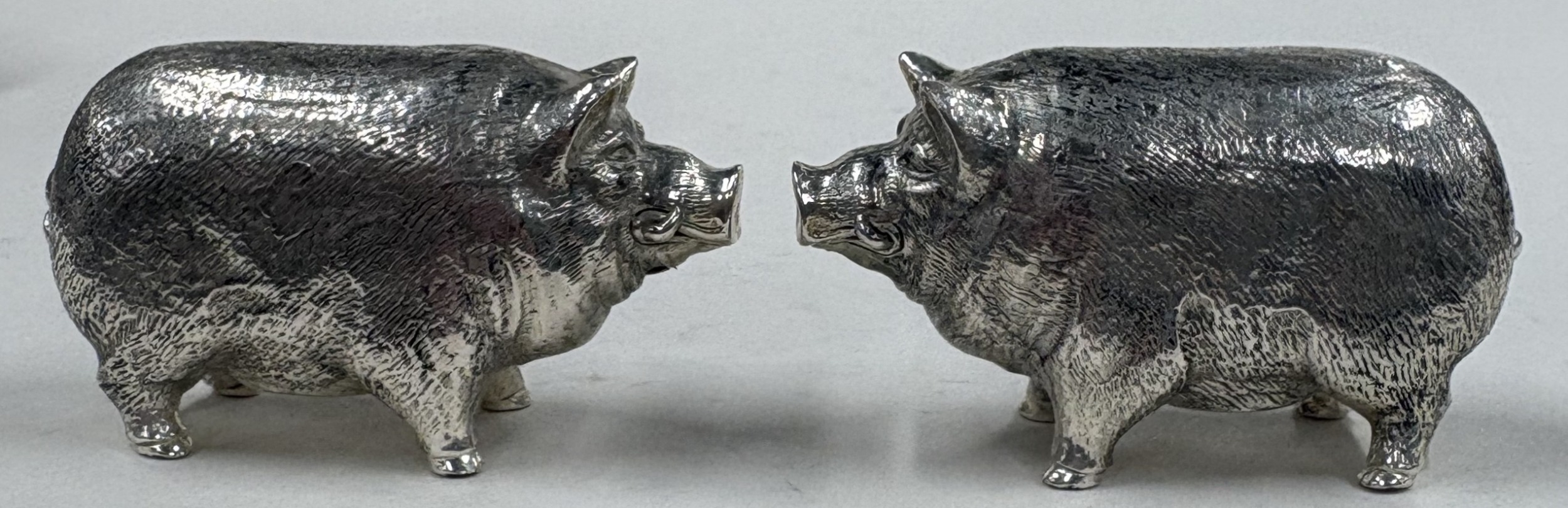 A pair of silver figures of pigs. Approx. 129 grams. Est. £400 - £600.