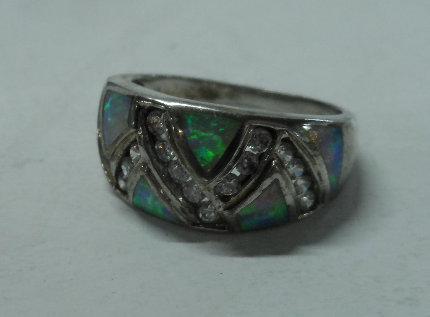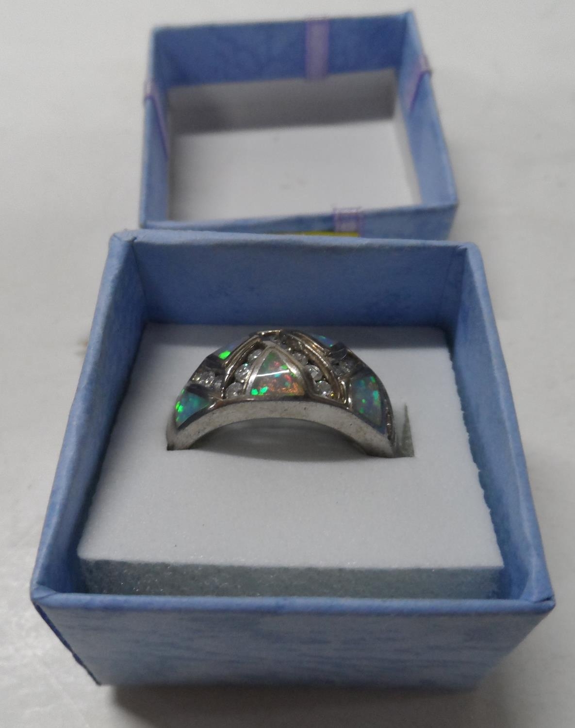 Silver 925 ring with unusually cut triangular Opals