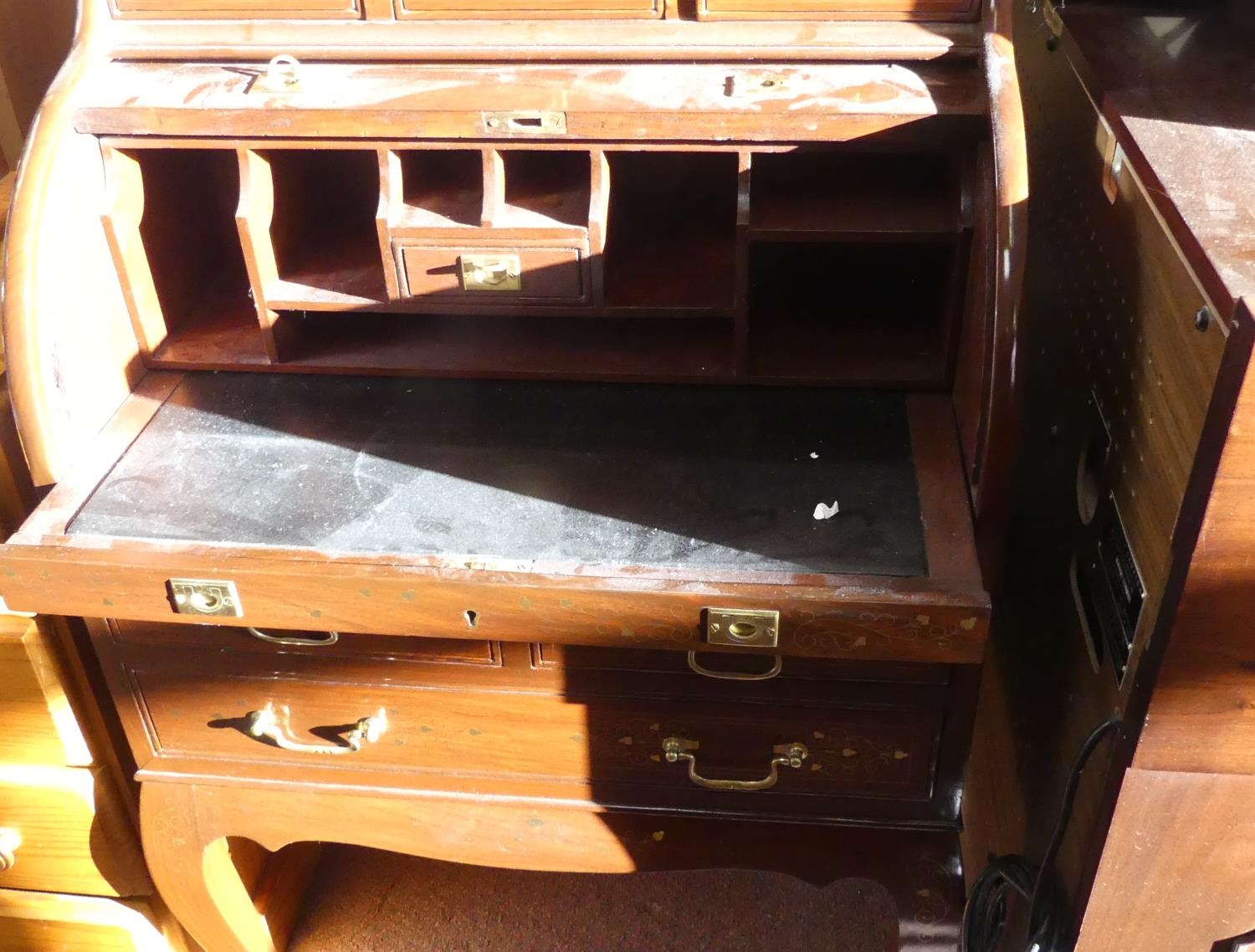 Brass Inlaid Hardwood Writing Bureau