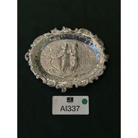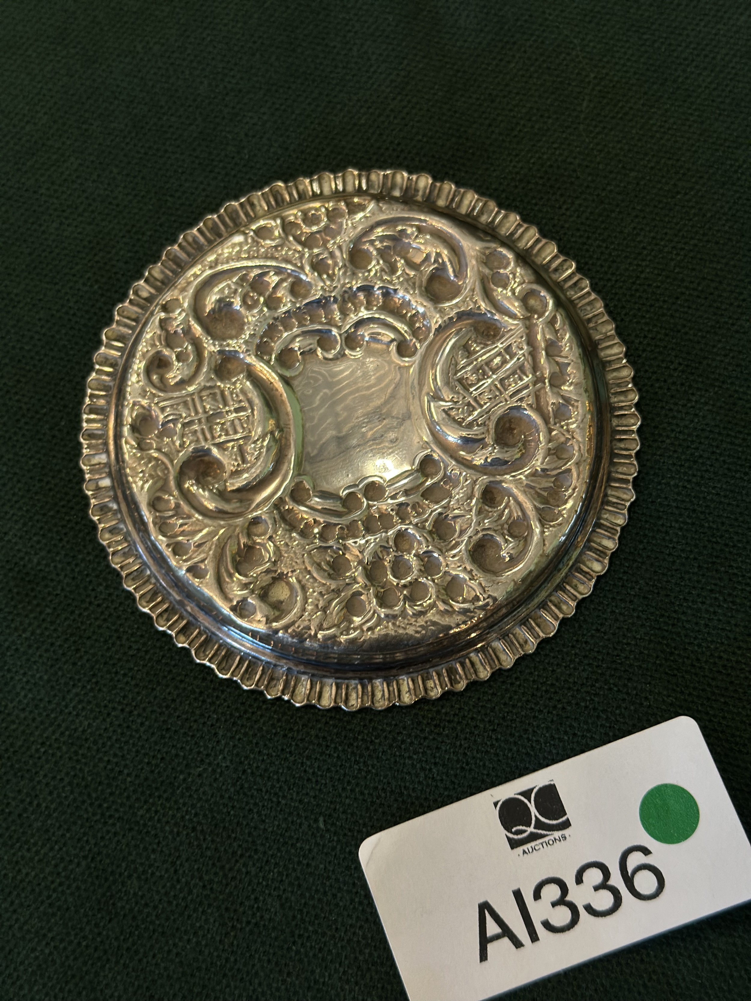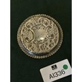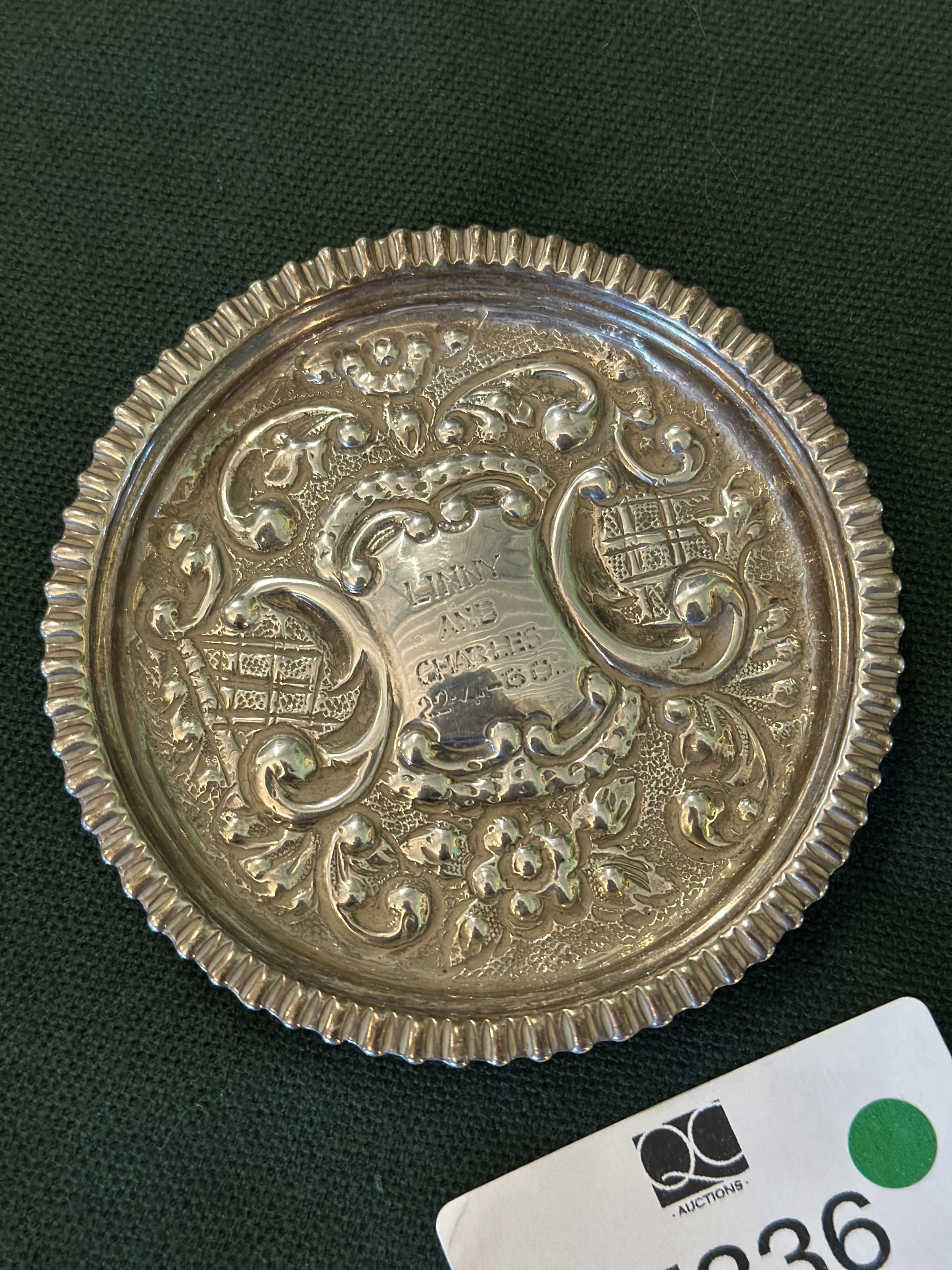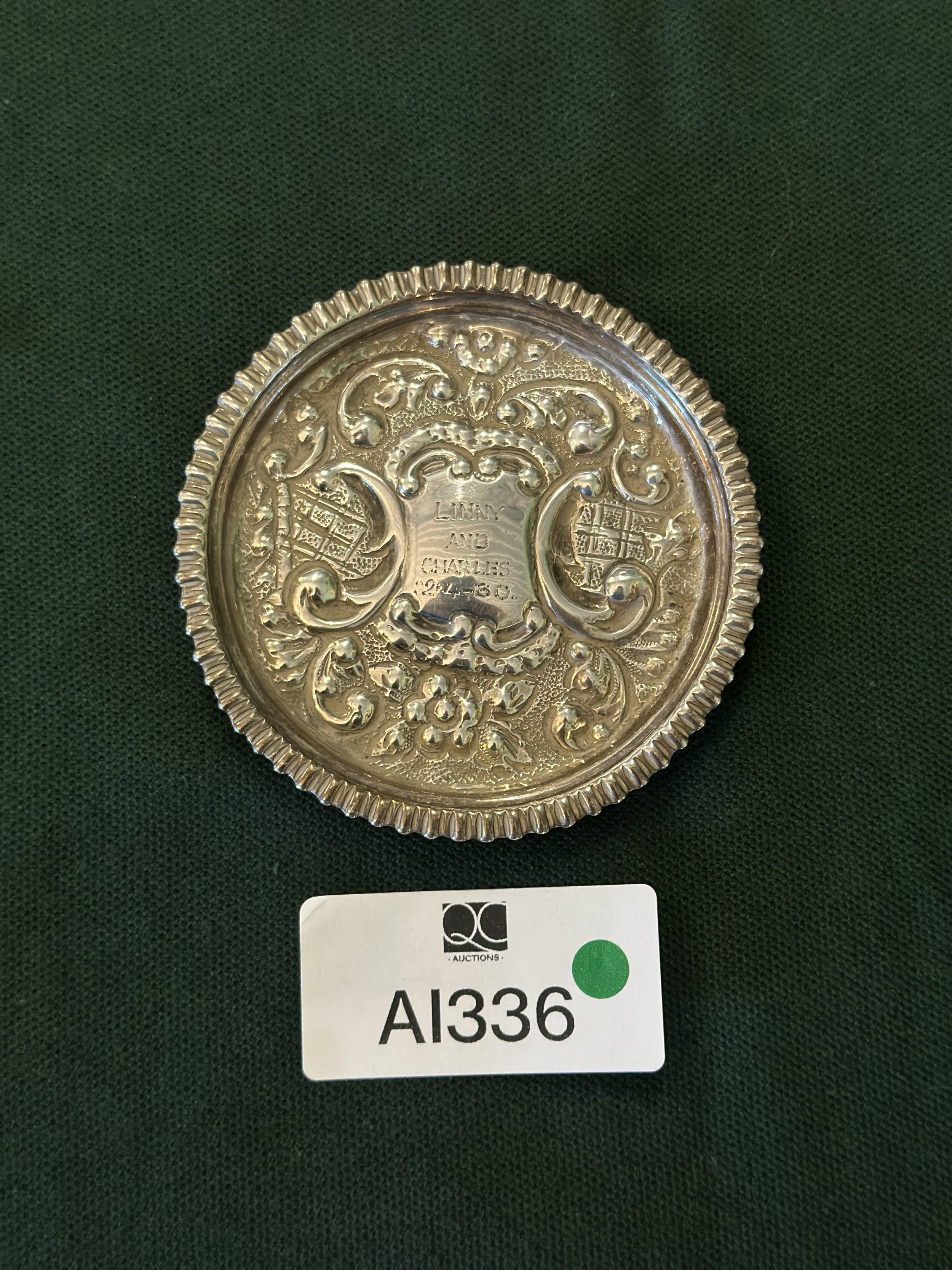 Round solid silver pin dish (cartouche engraving)