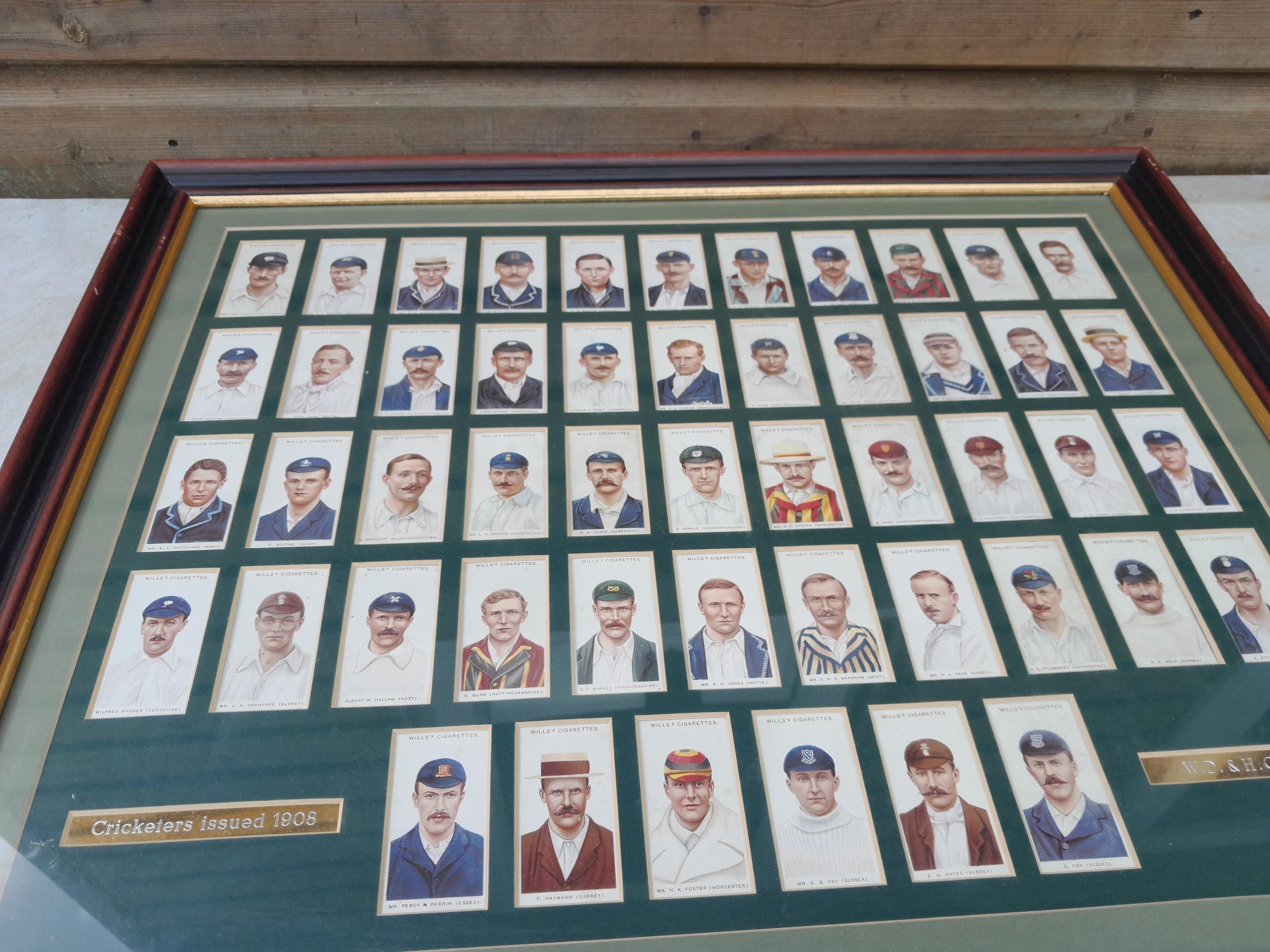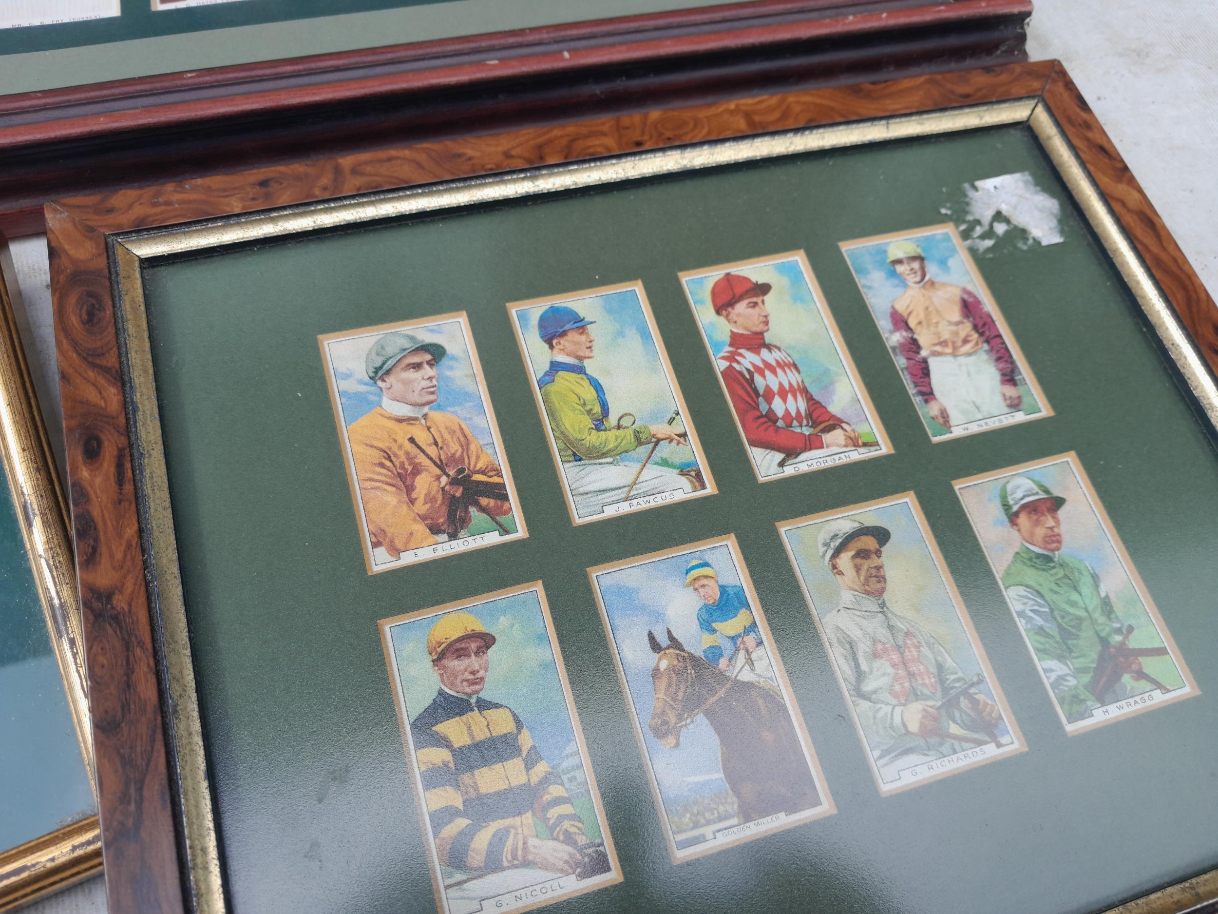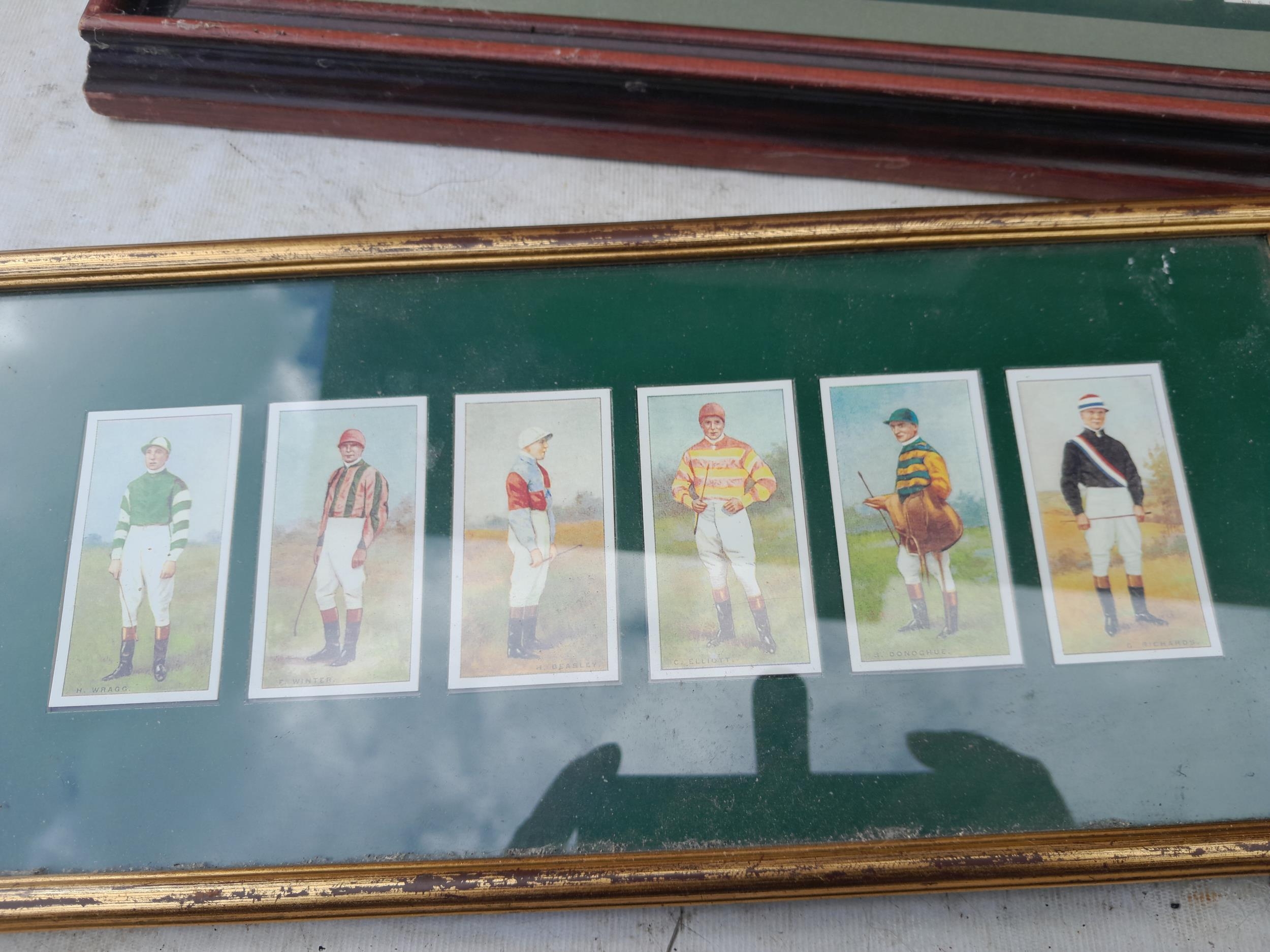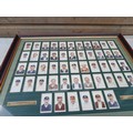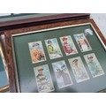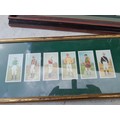 Cigarette cards mounted behind glass