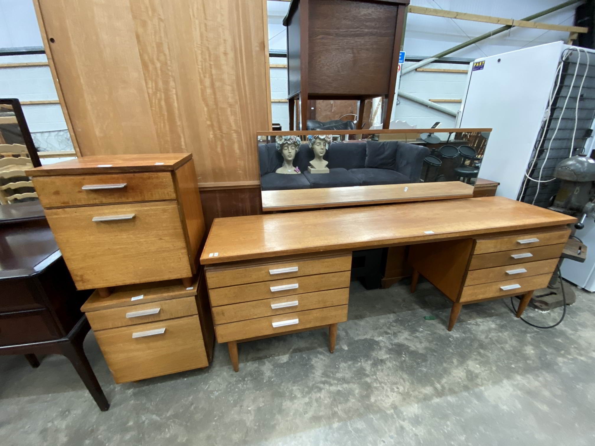 Pair of mid century teak White & Newton, Portsmouth bedside chests 51H 41W 33D and a matching dressing table 110H 183W 45D