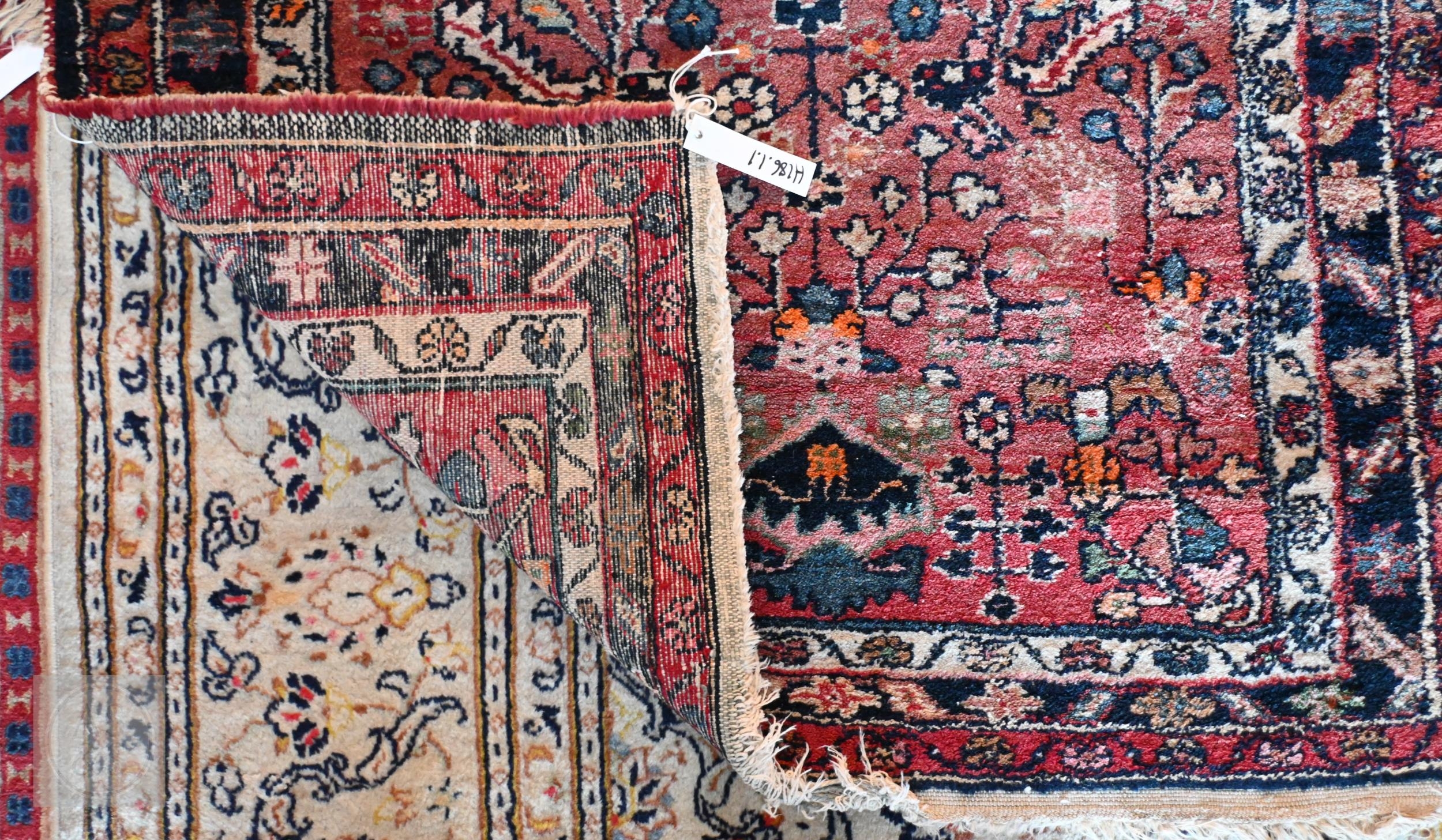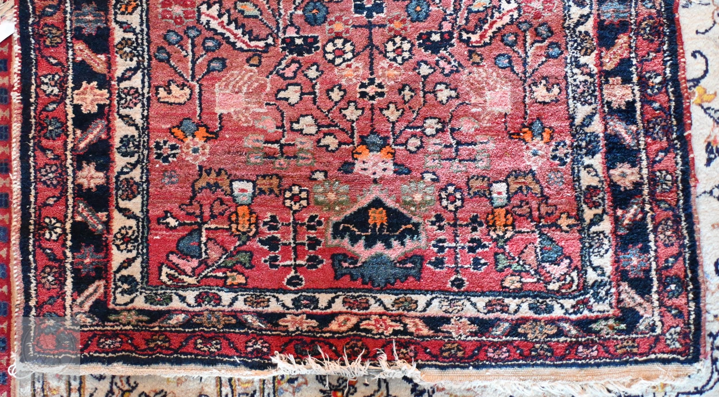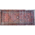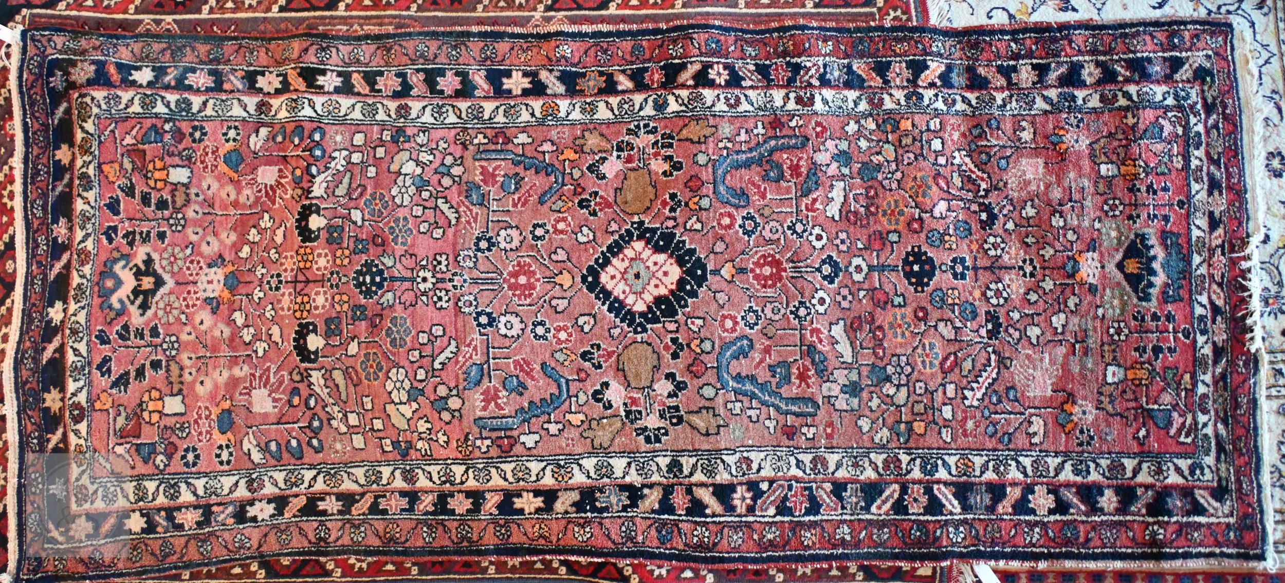 An old Persian Hamadan runner, the soft coral ground with floral designs, 235 cm x 101 cm