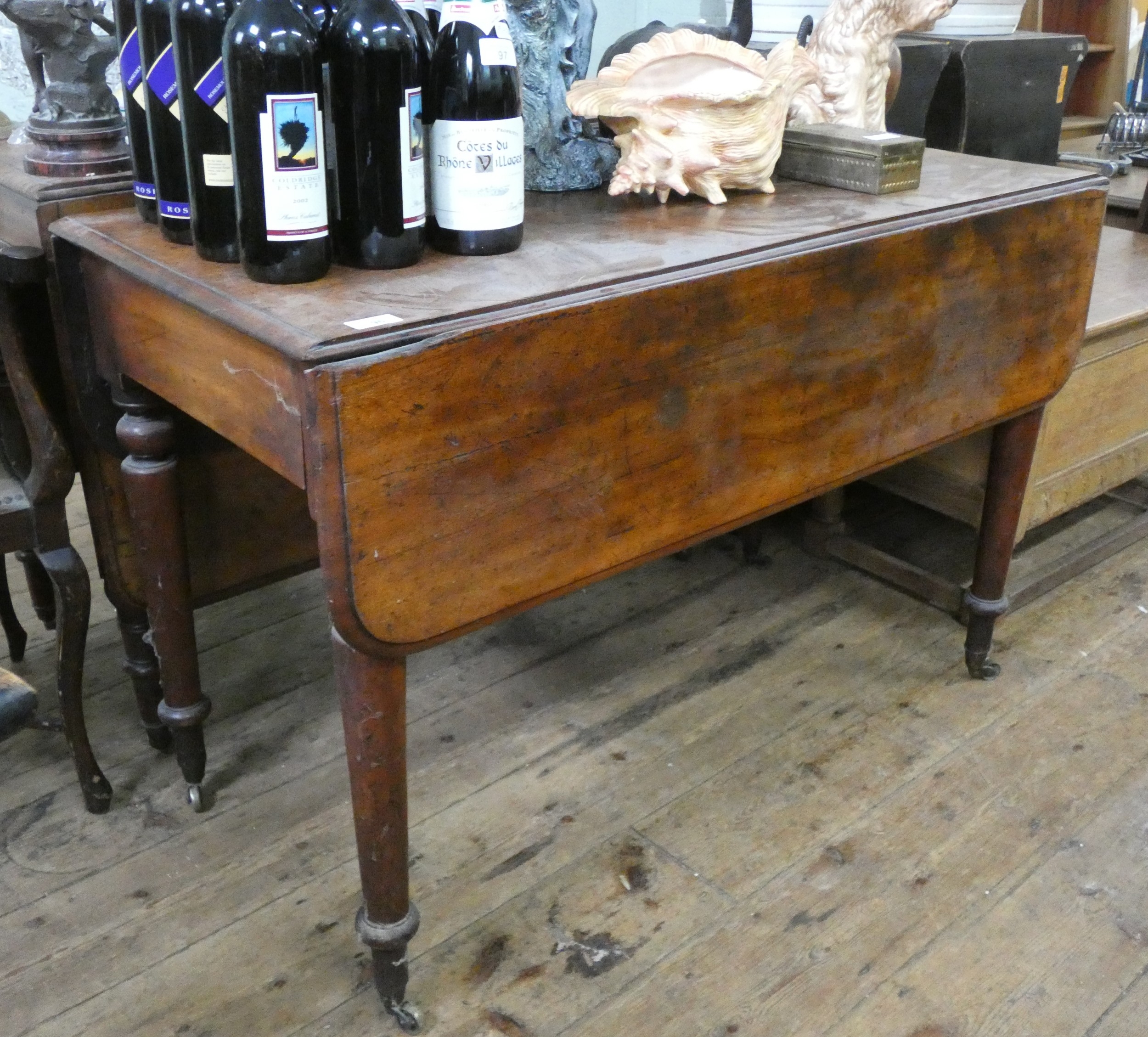A Victorian mahogany Pembroke table standing on turned legs, 3'6" wide