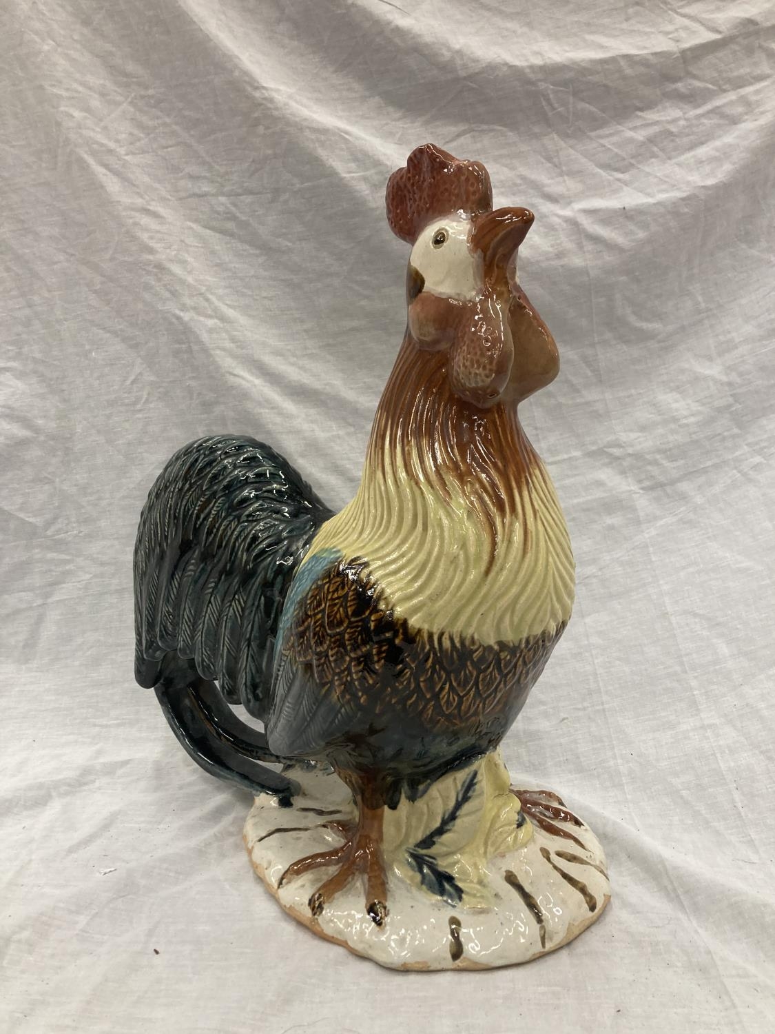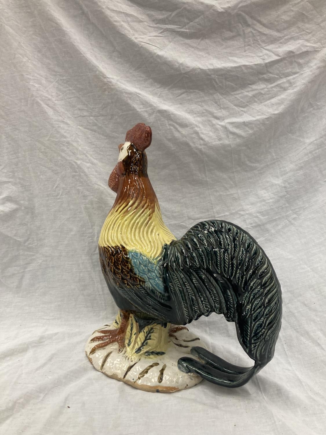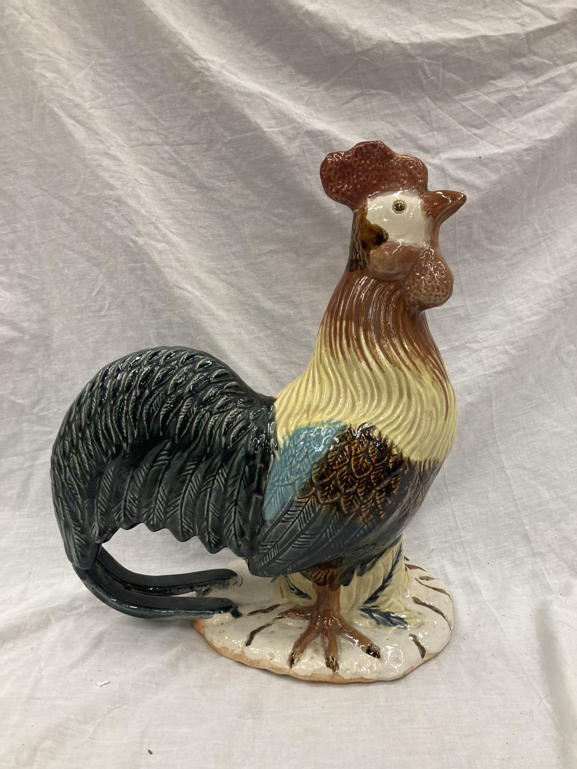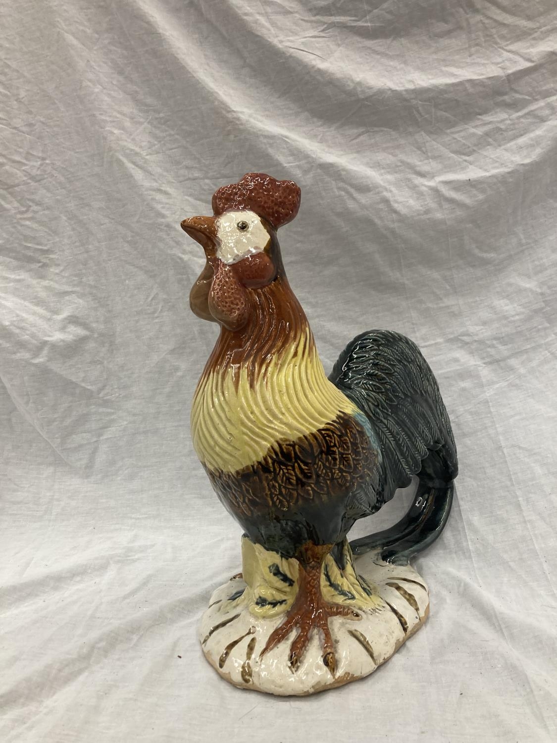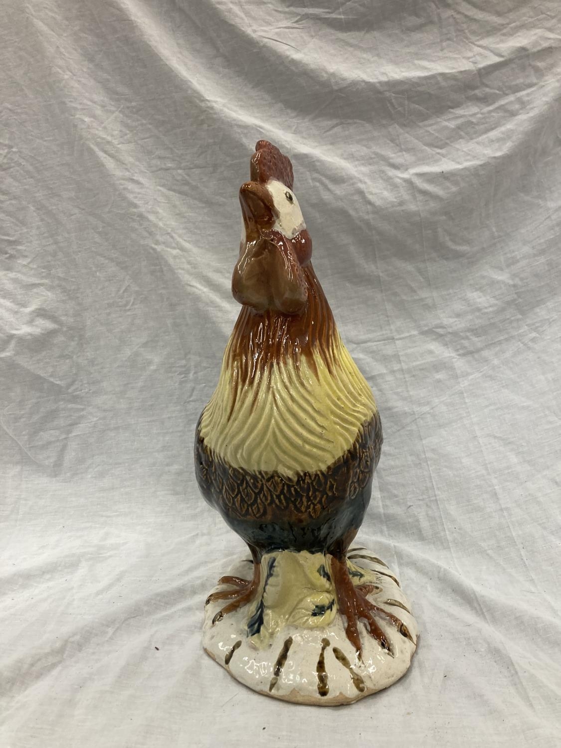 A LARGE CERAMIC COLOURFUL COCKEREL HEIGHT 46CM