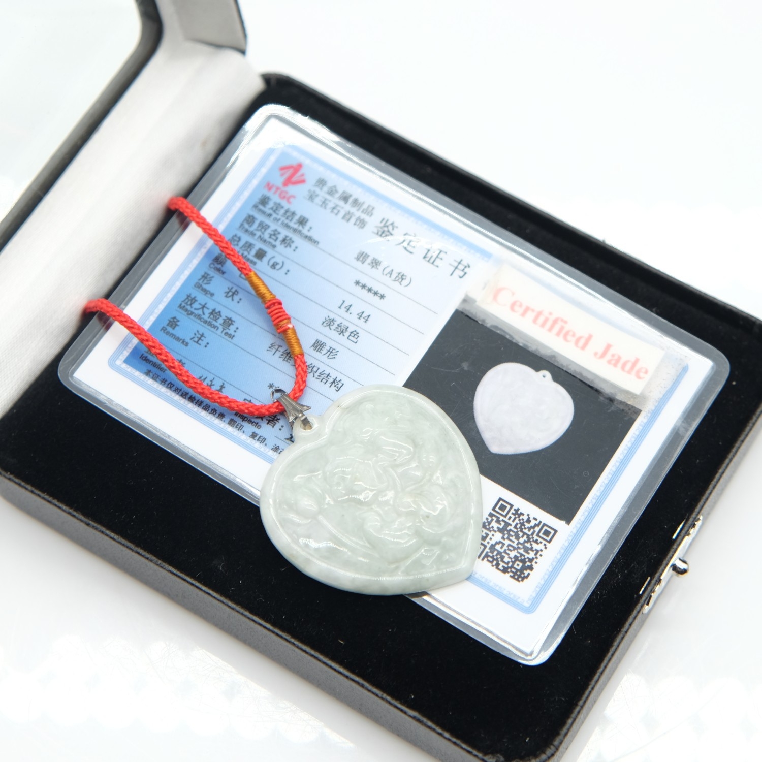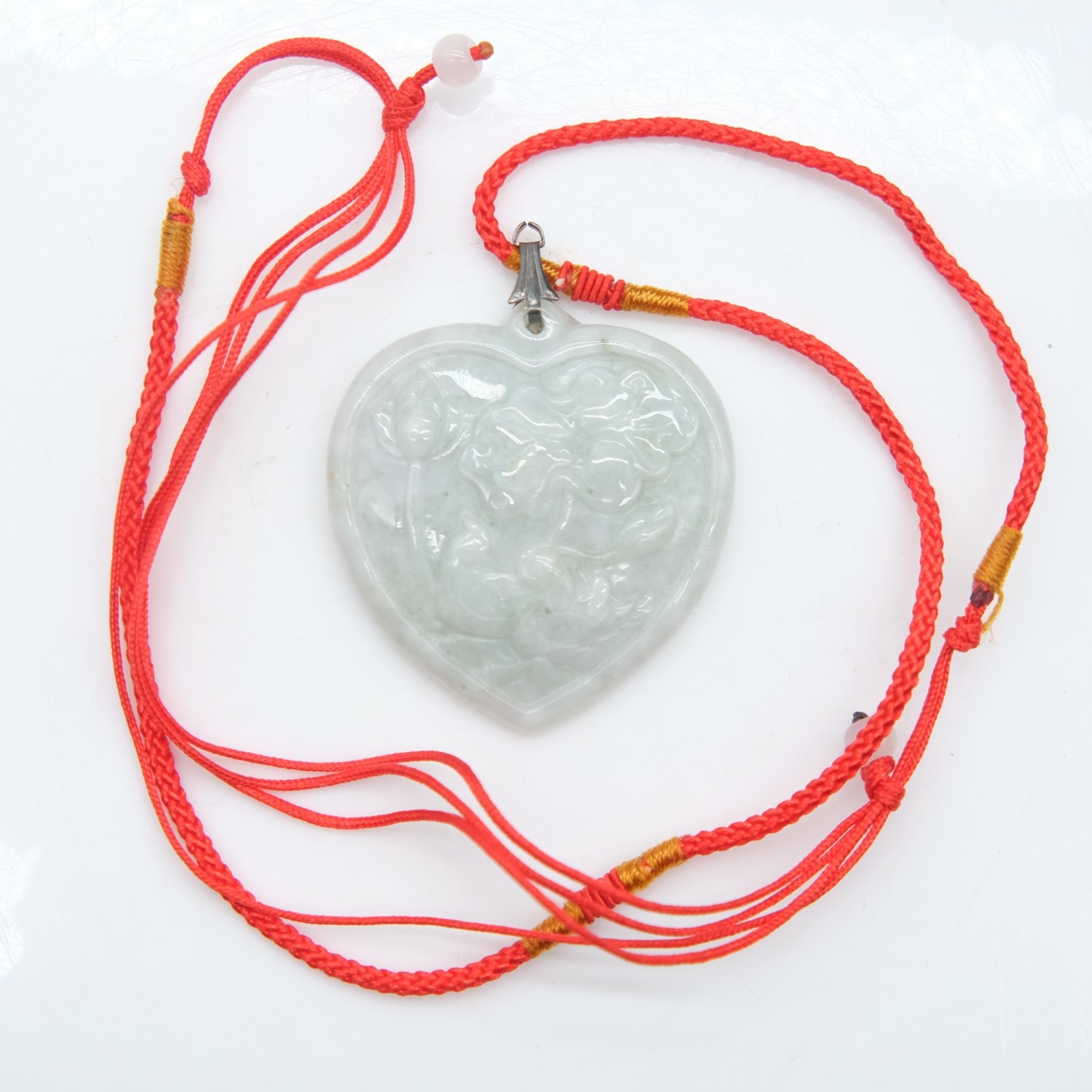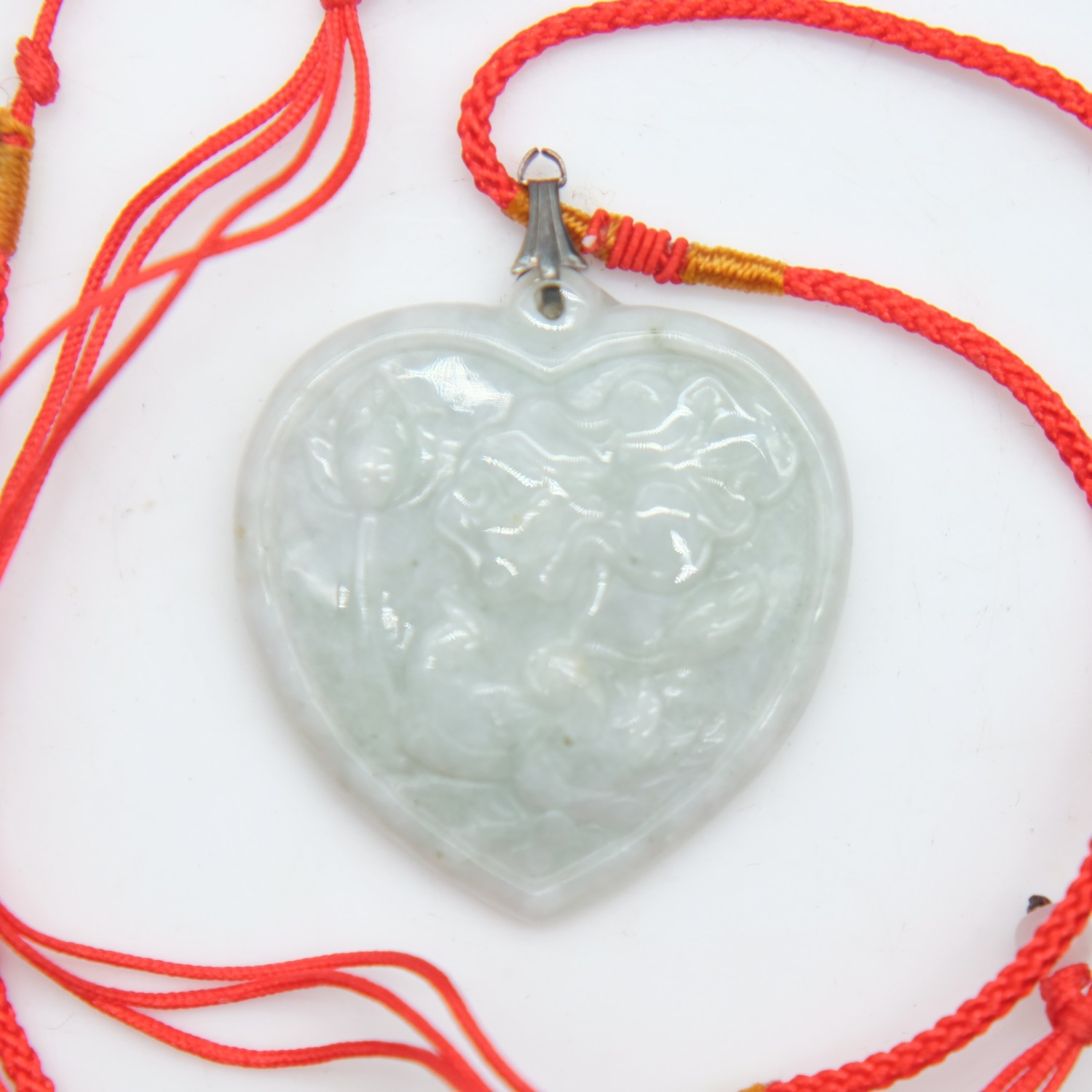 Jade heart shaped pendant, H: 40 mm. UK P&P Group 0 (£7+VAT for the first lot and £1+VAT for subsequent lots)