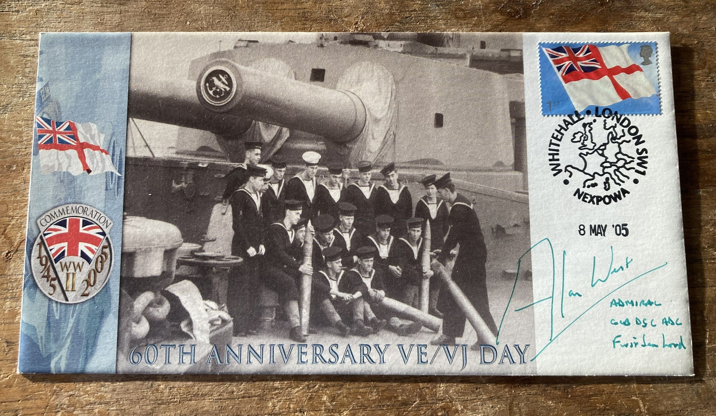 Falklands War Navy 60th Anniv VE/VJ Day cover signed by Alan Watt Admiral First Sea Lord 08.05.05 WW2 FDC. Alan William John West, Baron West of Spithead, GCB, DSC, PC (born 21 April 1948) is a retired admiral of the Royal Navy and formerly, from June 2007 to May 2010, a Labour Parliamentary Under-Secretary of State at the British Home Office with responsibility for security and a security advisor to Prime Minister Gordon Brown. Prior to his ministerial appointment, he was First Sea Lord and Chief of the Naval Staff from 2002 to 2006. In 1980 he was promoted to commander and took command of the frigate HMS Ardent and deployed to the Indian Ocean taking part in the first Armilla Patrol. In 1982 he laid a wreath off Norway, on the spot inside the Arctic Circle where the previous Ardent had been sunk in 1940 by the German battleships Scharnhorst and Gneisenau. Shortly after, the ship deployed to the South Atlantic for the Falklands War, where she was sunk in Falkland Sound on 21 May during the successful retaking of the islands. West was the last to leave the sinking ship and was subsequently awarded the Distinguished Service Cross for his leadership. West led the victory parade through the City of London on return from the Falkland Islands. He remains the President of the HMS Ardent Association. Single Vendor collection. Good condition. We combine postage on multiple winning lots and can ship worldwide. UK postage from £5.99, EU from £7.99, Rest of World from £9.99.