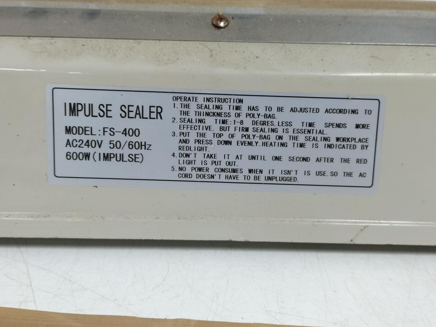 Kite Impulse Sealer, Model FS-400. Powers Up.