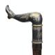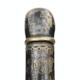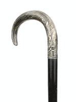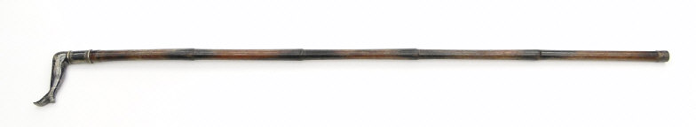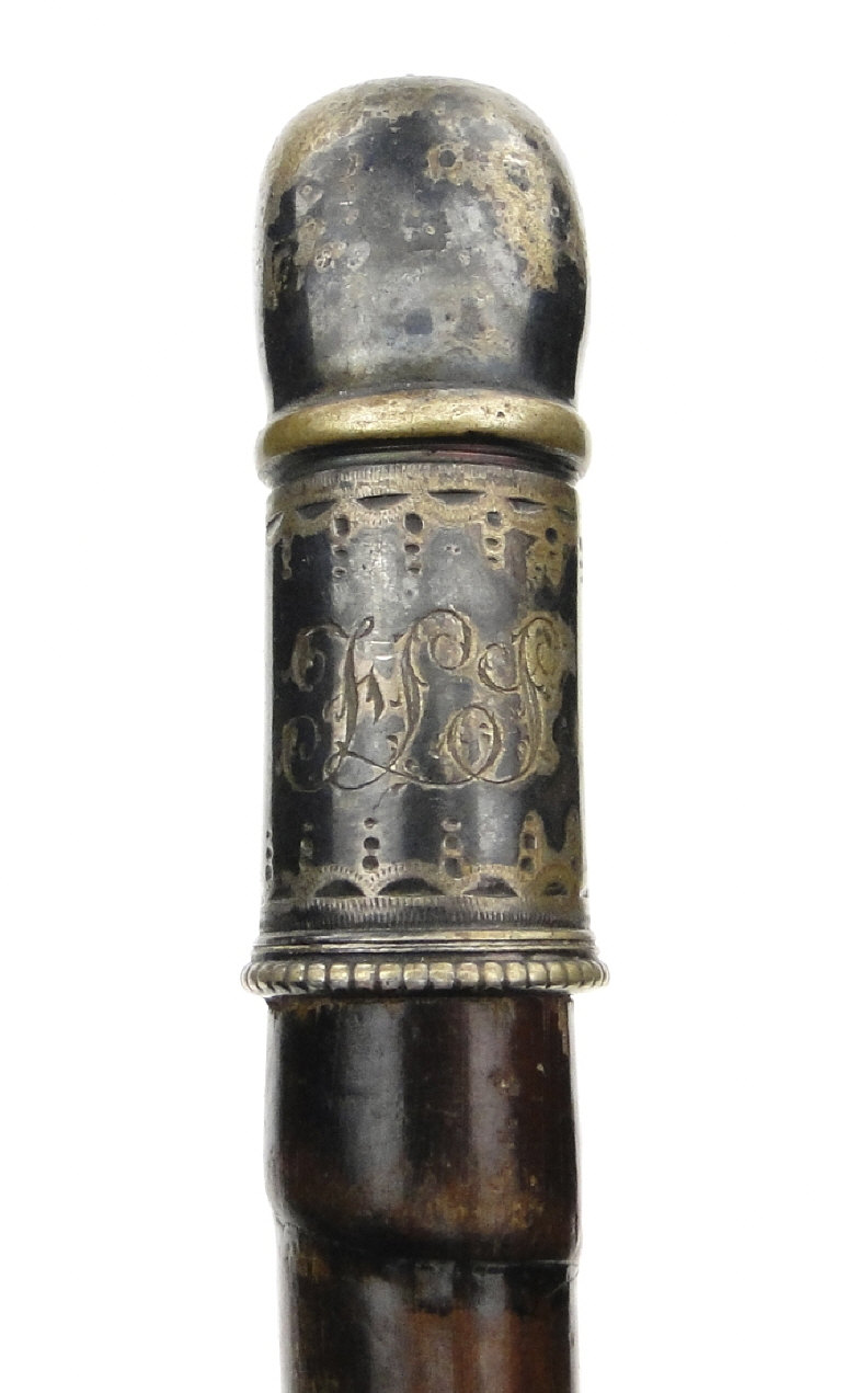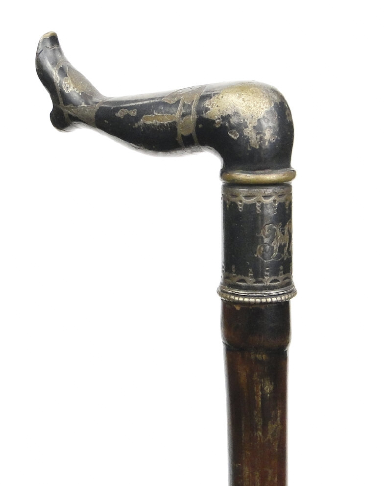 Simulated bamboo walking cane with silver plated stockinged leg terminal, 88cm high