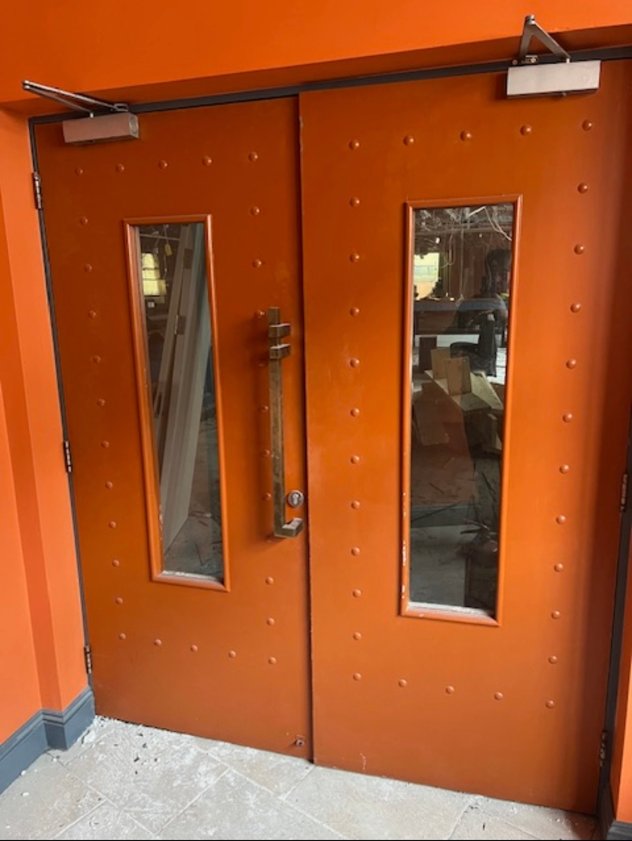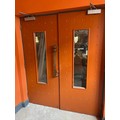 Star Lot : A Super pair of Commercial Double doors with glass panels, Long brass handles and Door closers. The buyer would need to collect after payment in Clontarf.