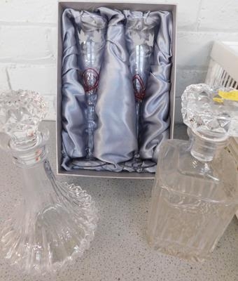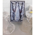 Pair of boxed ruby anniversary glasses & two decanters