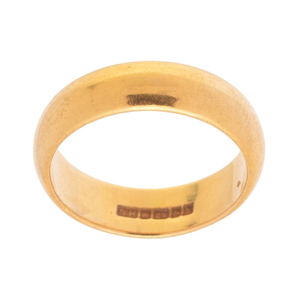 22ct gold wedding band, ring size M, 7.3g