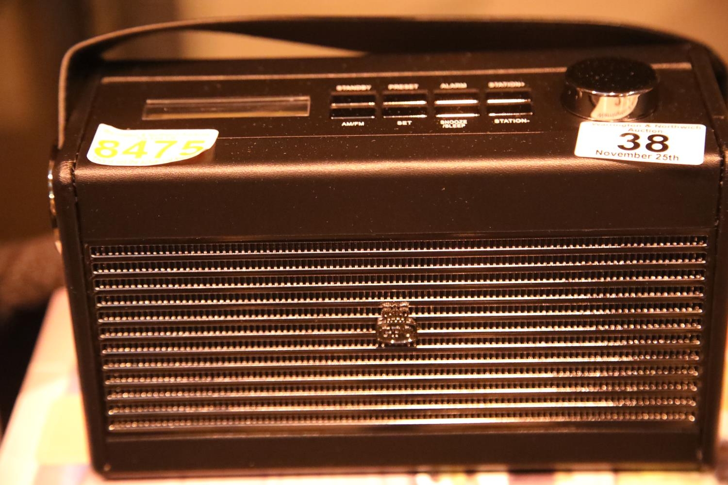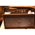 Black GPO Darcy portable analogue FM/AM radio with alarm clock, preset 20 radio stations, boxed. Not available for in-house P&P