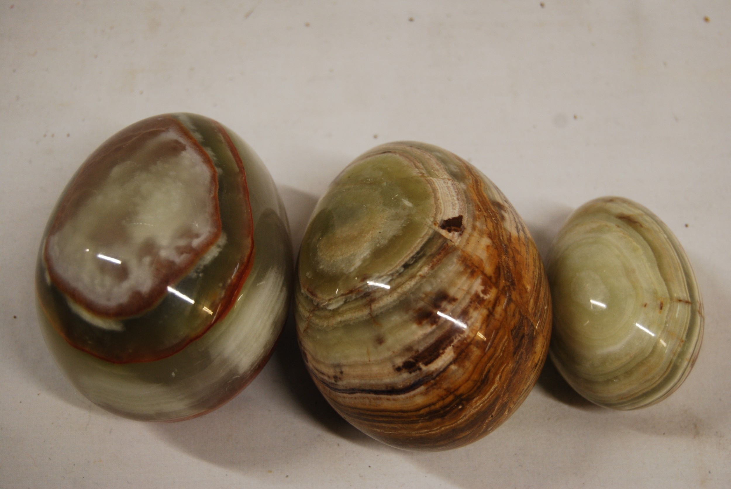 3 POLISHED STONE EGGS