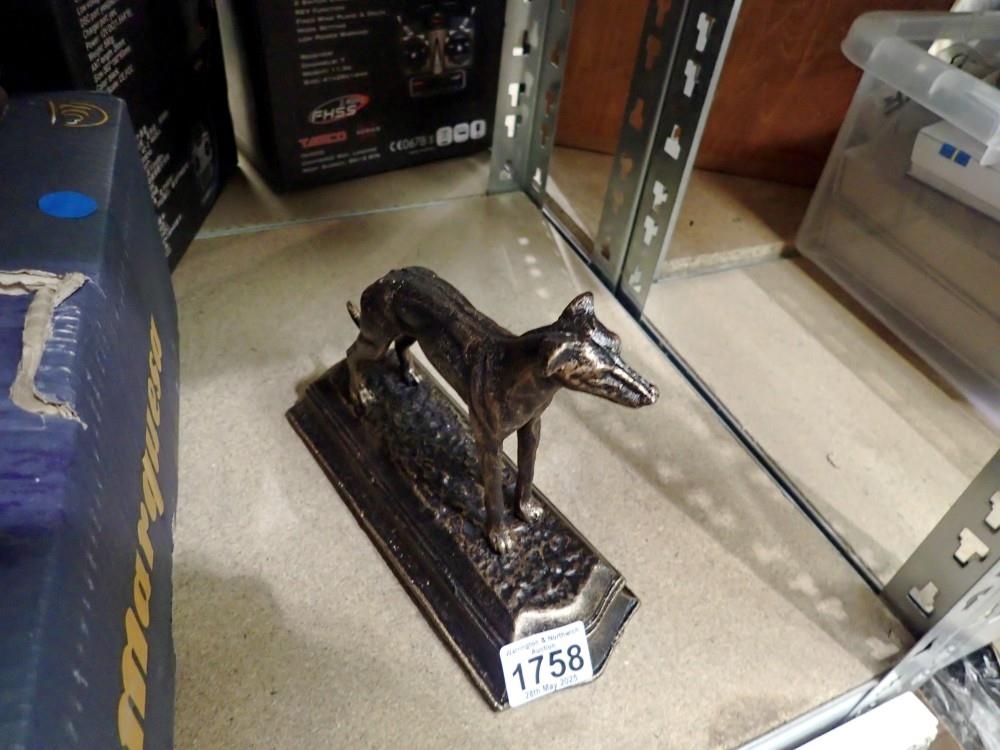 Cast iron small greyhound figure, H: 18 cm. UK P&P Group 2 (£20+VAT for the first lot and £4+VAT for subsequent lots)
