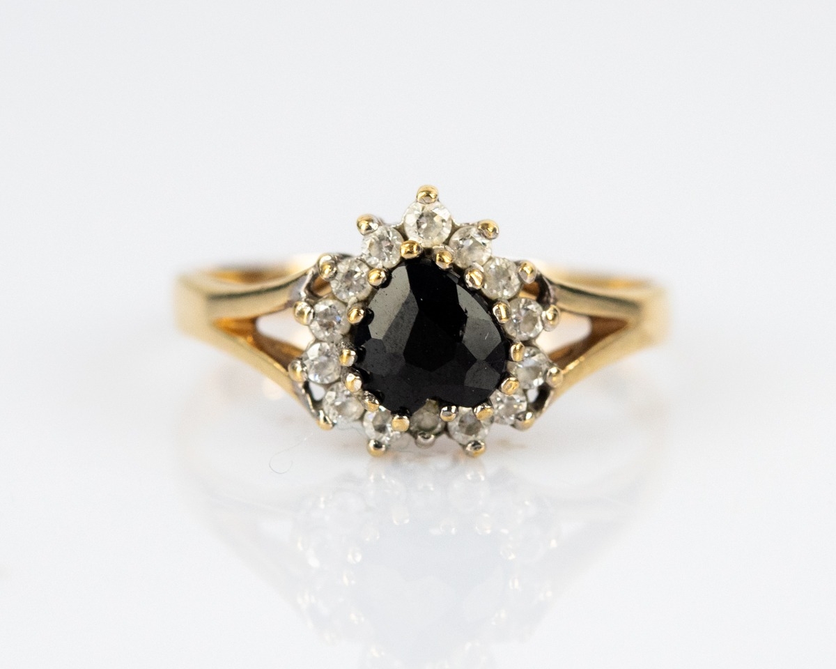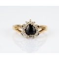 9ct GOLD CLUSTER RING set with an oval blue paste stone and surround of small white paste stones, 1.6gms