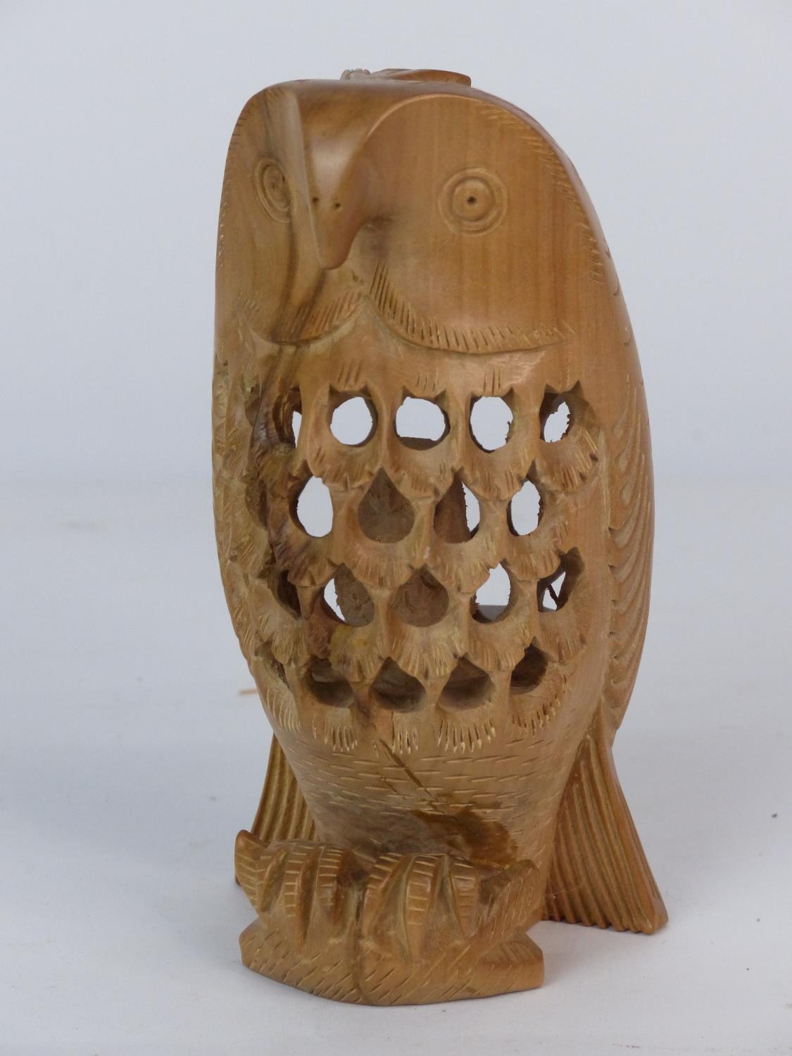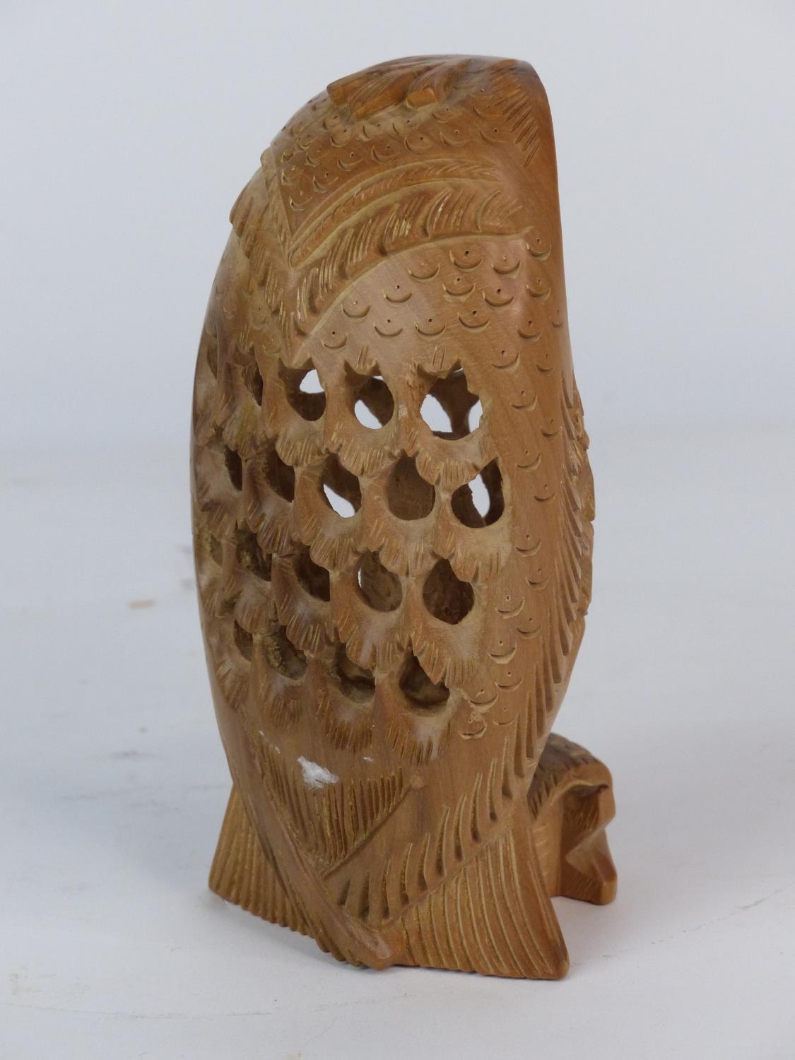 An unusual wood carving of an owl. Measuring 14cm tall.