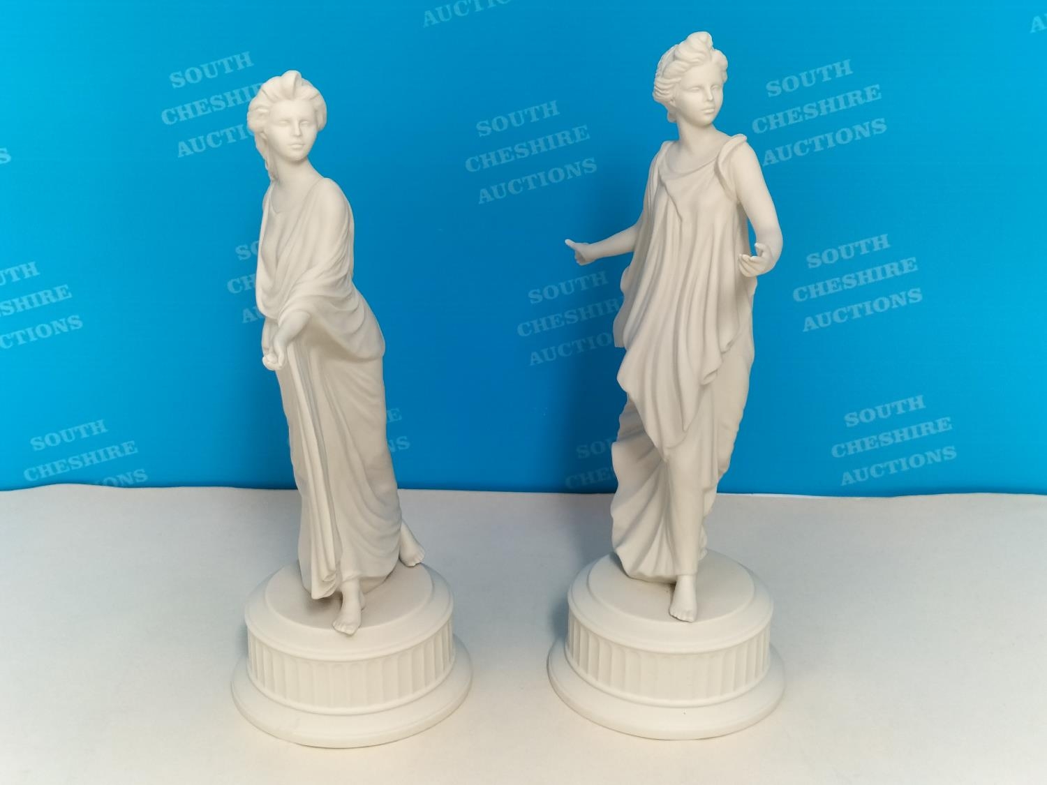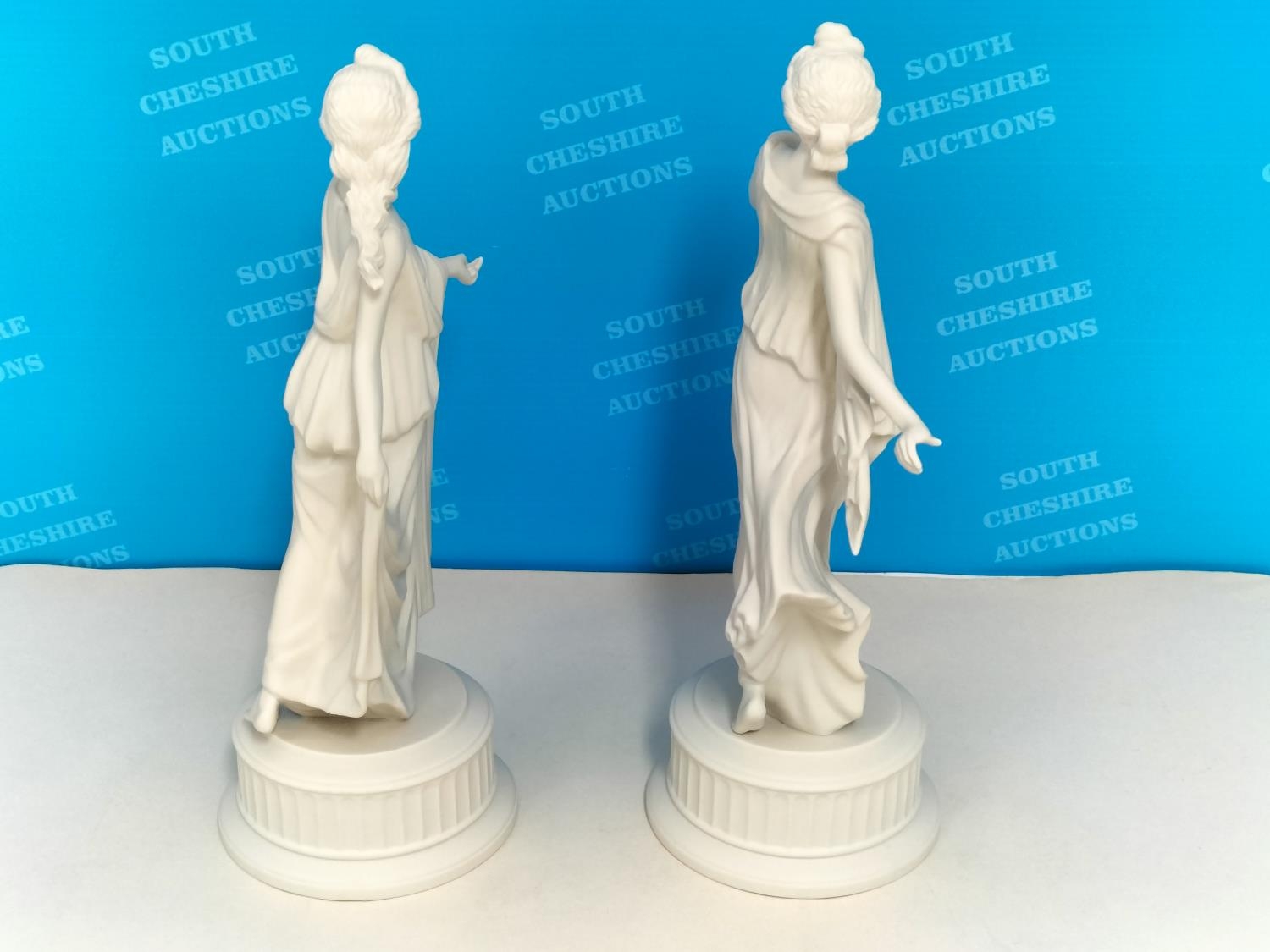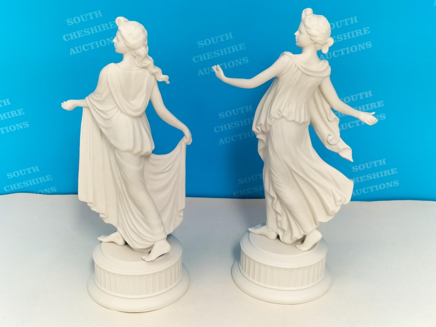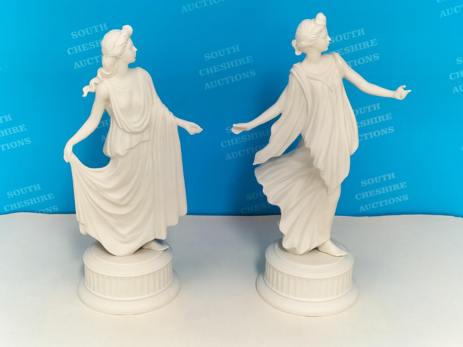 Wedgwood Fine Porcelain 'The Dancing Hours Collection' Fifth and Sixth Figurines, Produced for Compton & Woodhouse. Each Figurine in a Limited Edition Run of 12,500, these being Nos 2,775 and 2,597. Tallest 25cm.