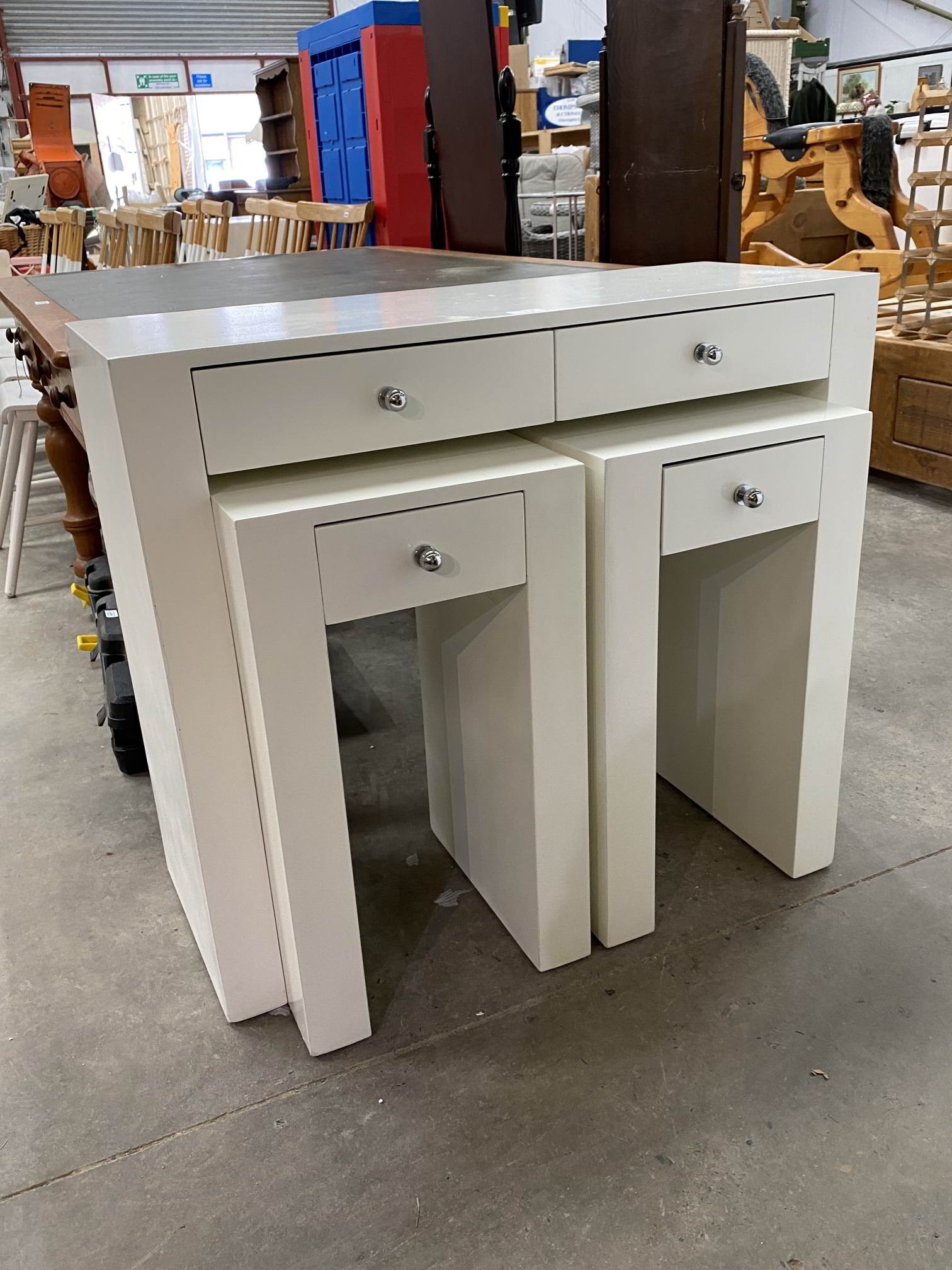 Contemporary white nesting console table 76H 90W 35D
